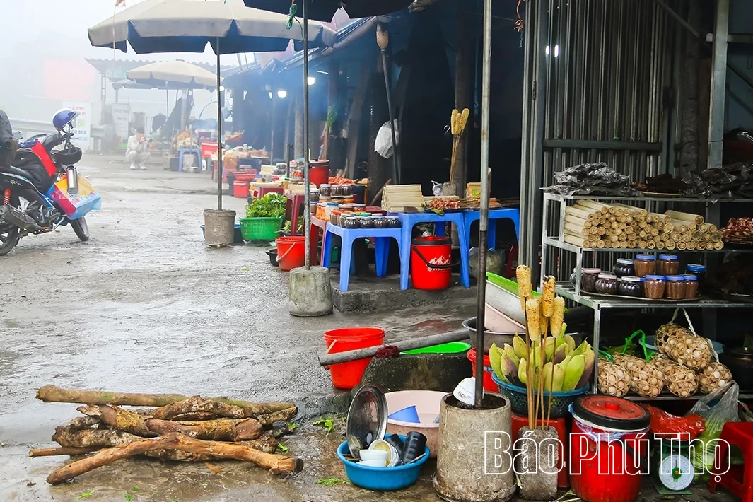 Các sạp hàng bày bán nhiều mặt hàng nông sản đặc trưng của địa phương.