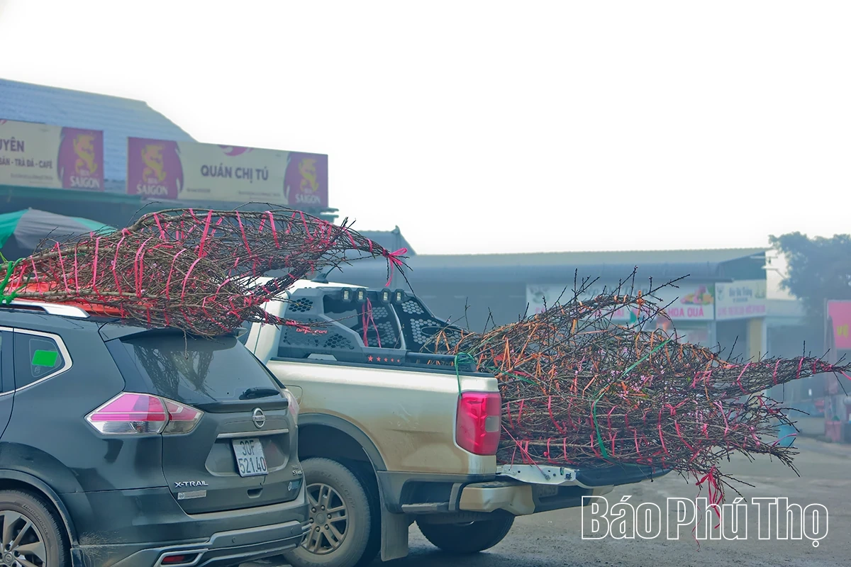 Những cành đào được vận chuyển về với vùng xuôi, mang mùa xuân đến với mọi nhà.