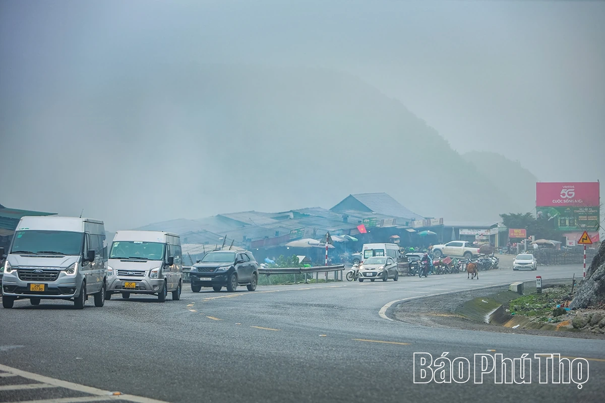 Do người dân đổ về quê ăn Tết trước dịp Tết Nguyên đán Bính Ngọ nên lưu lượng phương tiện lưu thông qua đèo Đá Trắng đông hơn thường ngày.