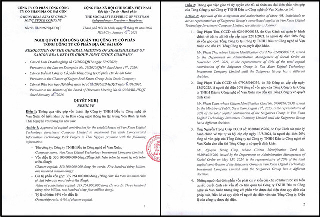 Saigonres cử ông Phạm Thu- Chủ tịch HĐQT, ông Phạm Tuấn-Thành viên HĐQT và ông Nguyễn Trọng Giáp làm người đại diện phần vốn góp này tạiĐầu tư Công nghệ số Vạn Xuân.
