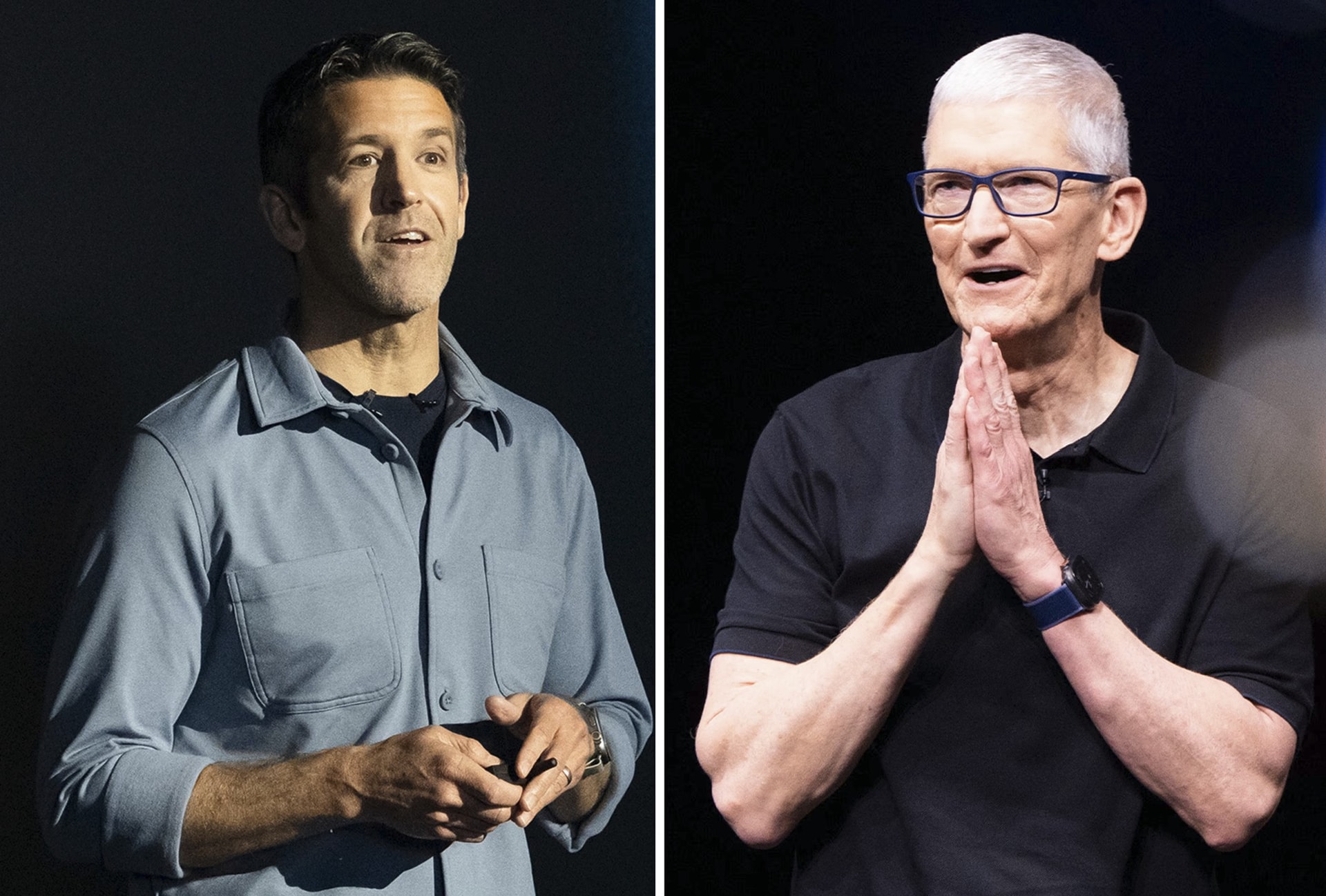 John Ternus (trái) sẽ thay Tim Cook làm CEO Apple từ ngày 1/9 - Ảnh: Getty Images
