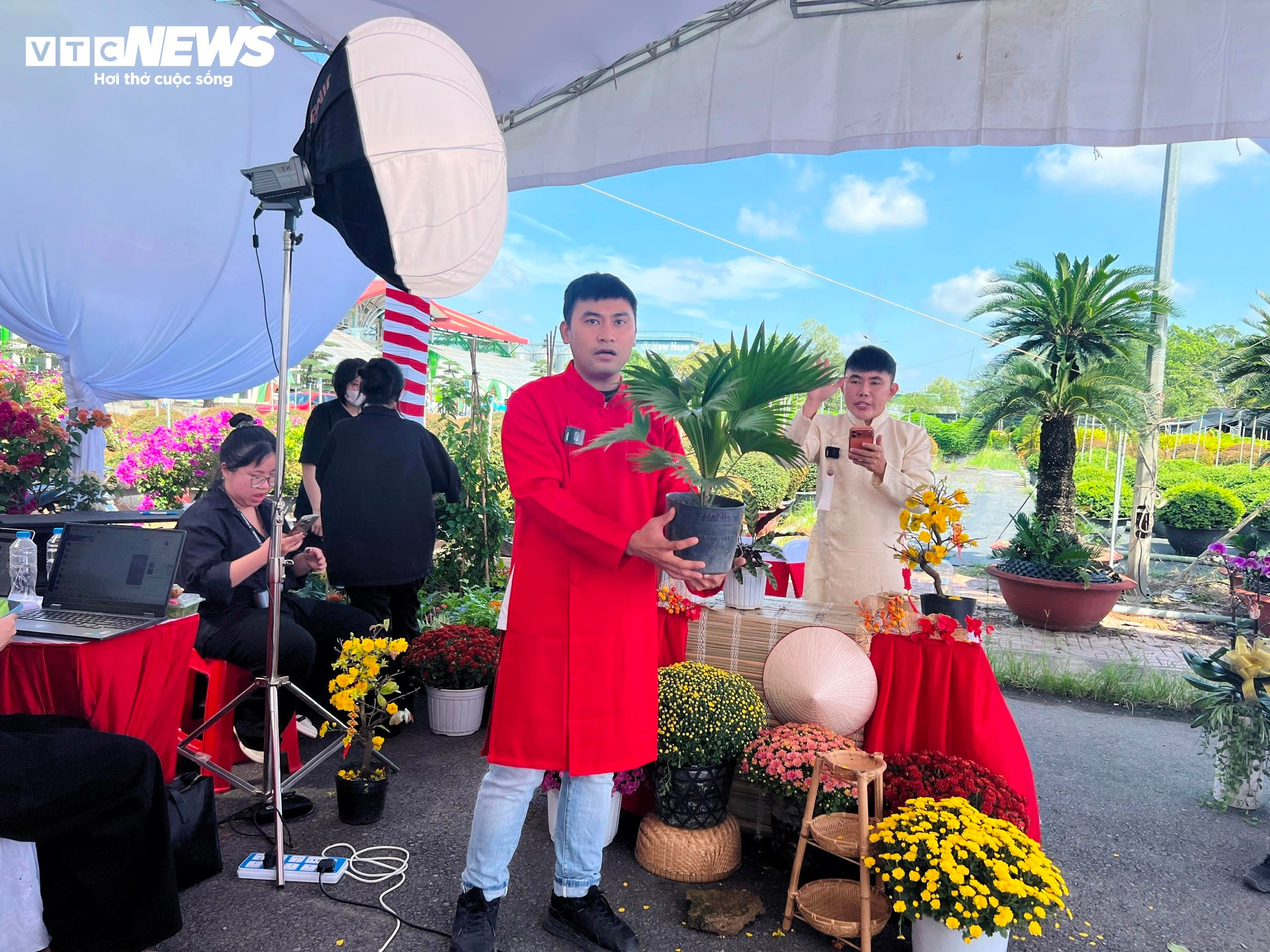 Các nhà sáng tạo nội dung livestream bán hoa Tết.