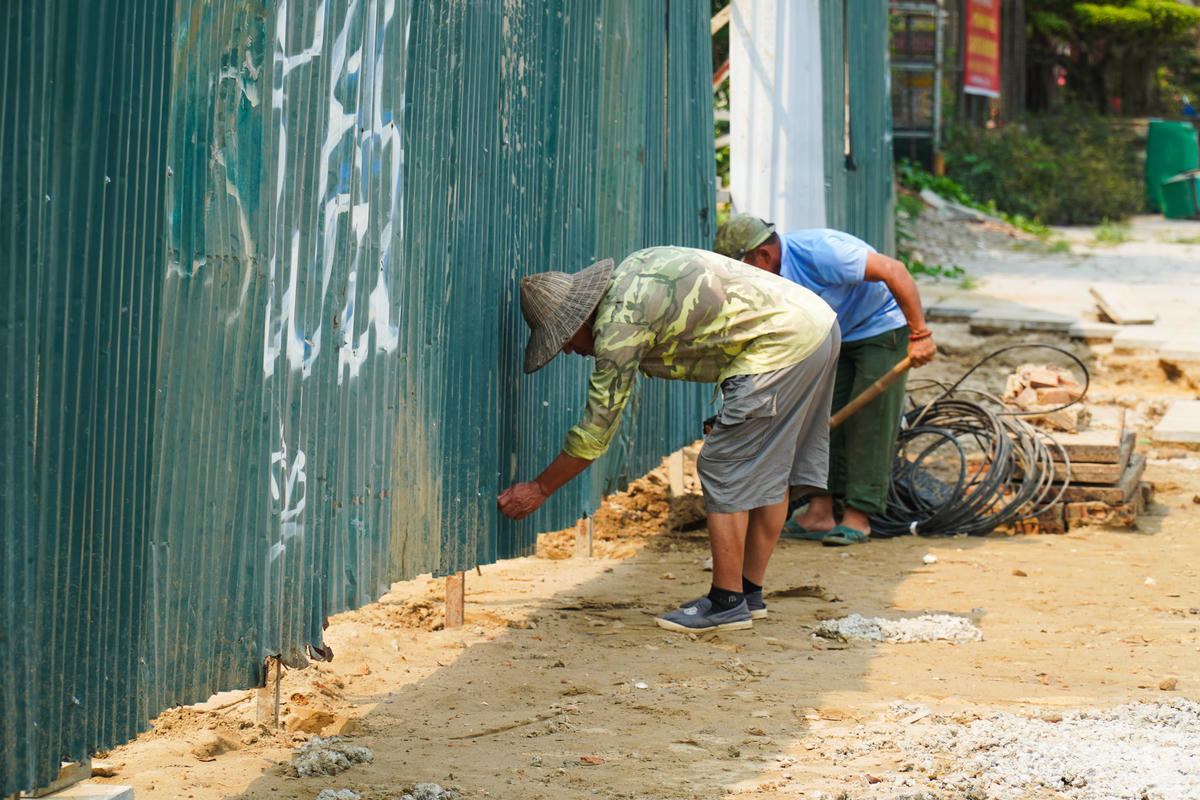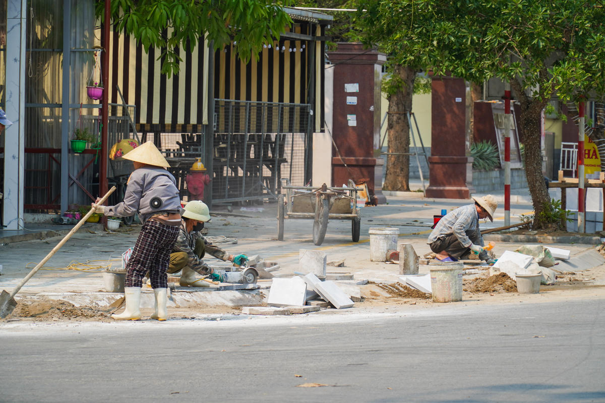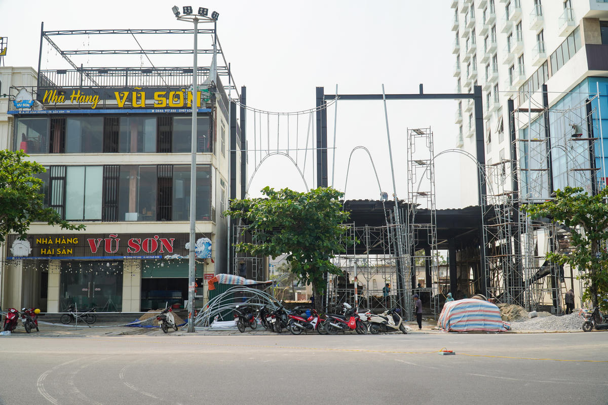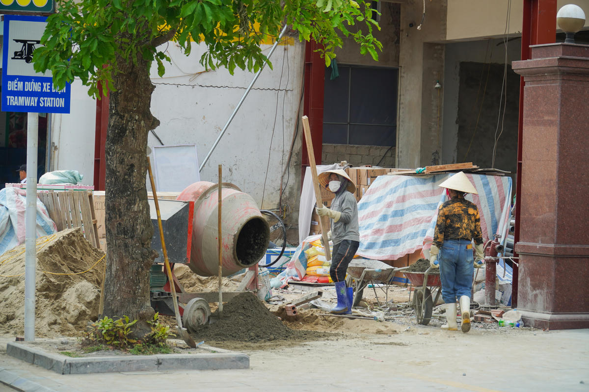 Trên tuyến đường Hồ Xuân Hương, trục 'xương sống' bám song song với mặt biển, nhiều đoạn vỉa hè, bó vỉa bị hư hỏng đang được tháo dỡ, thay thế và hoàn thiện. Ảnh: Đình Minh