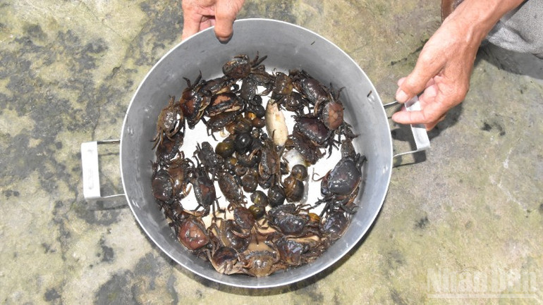 Khoảng 10 phút sau, ông Đẹt bắt đầu thăm những chiếc 12 cửa ngục đầu tiên, thành quả mang lại là những con cua đồng với nhiều kích cỡ. Các cái tiếp theo, cá các loại rất ít, chỉ có cua đồng. Những con lớn, ông lựa đem về, còn các con nhỏ được thả về tự nhiên để tái tạo nguồn lợi trong thiên nhiên.