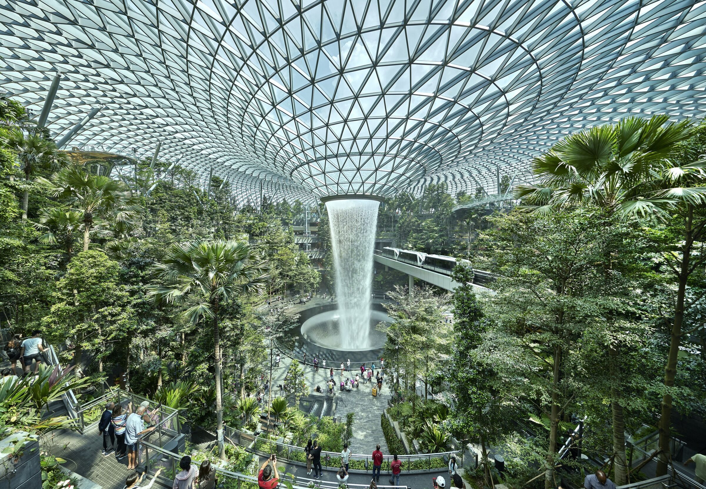 Với kiến trúc mái vòm bằng kính độc đáo, những khu vườn xanh mướt và hàng trăm cửa hàng, nhà hàng, Jewel Changi trở thành một điểm đến hấp dẫn, thu hút đông đảo du khách. (Ảnh: Archello)