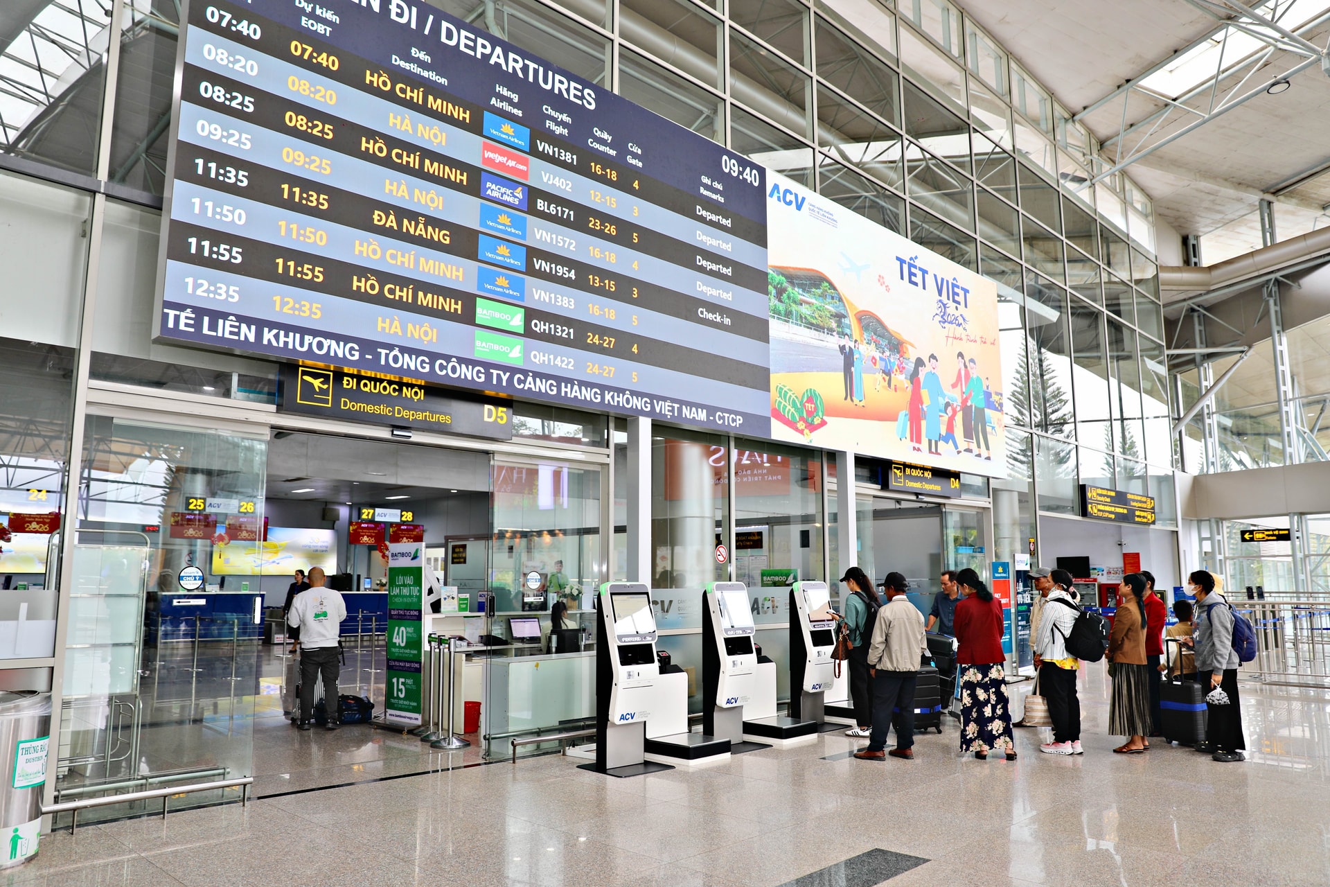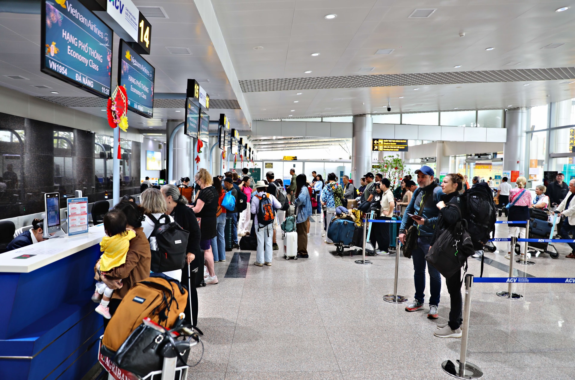 Hành khách tại Cảng hàng không quốc tế Liên Khương ngày 27/2. Ảnh: Chính Thành