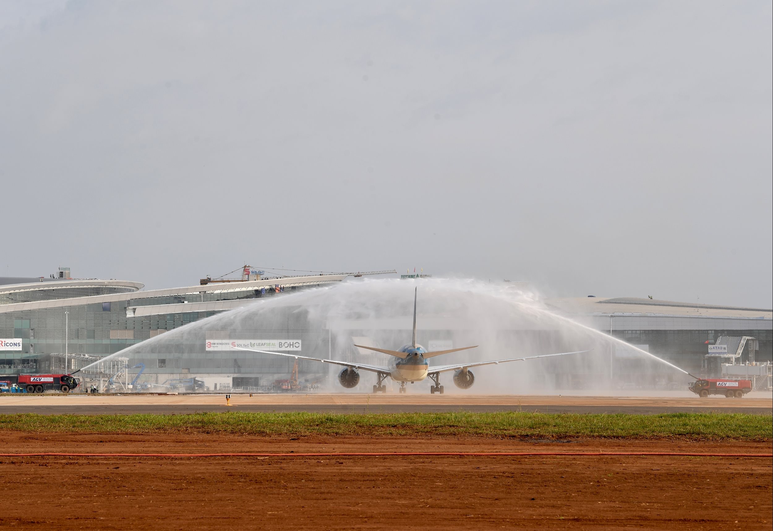 Sân bay Long Thành đã chính thức đón tàu bay thương mại đầu tiên hạ cánh do Vietnam Airlines thực hiện. Ảnh VNA