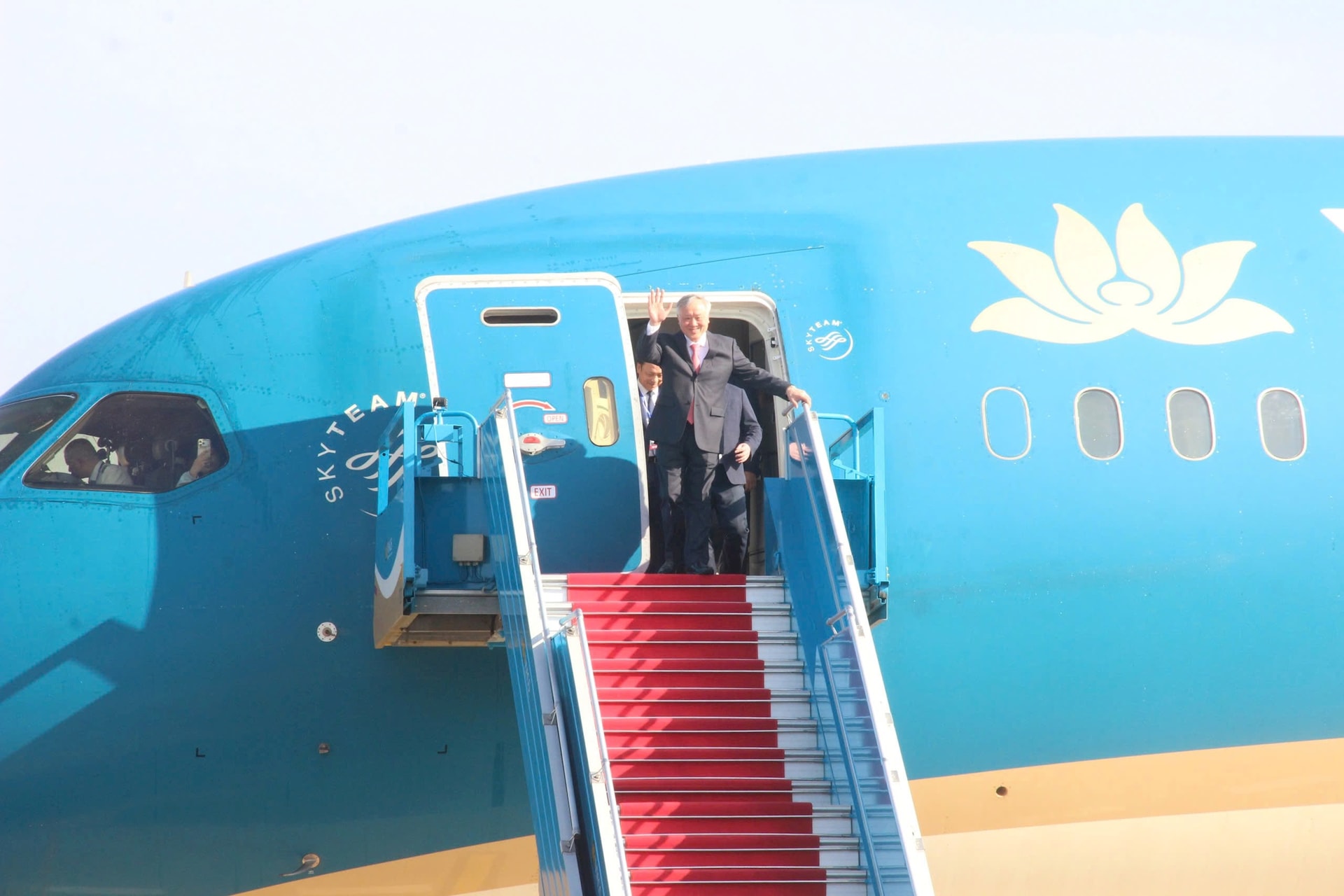 Chuyến bay chở Phó Thủ tướng Thường trực Nguyễn Hòa Bình hạ cánh sân bay Long Thành, tỉnh Đồng Nai sáng 19-12. Ảnh: Nghiêm Ý