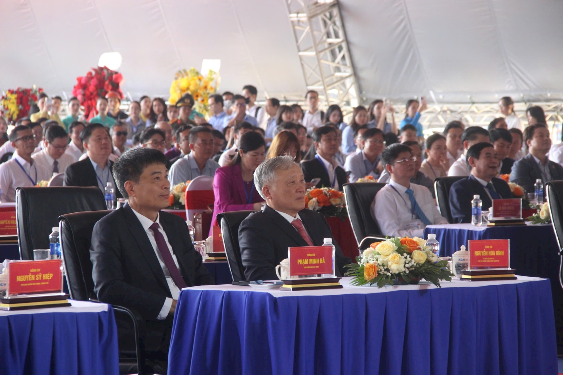 Phó Thủ tướng Thường trực Nguyễn Hòa Bình cùng các đại biểu tham dự lễ khánh thành, khởi công các dự án tại điểm cầu sân bay Long Thành, sáng 19-12. Ảnh: Nghiêm Ý
