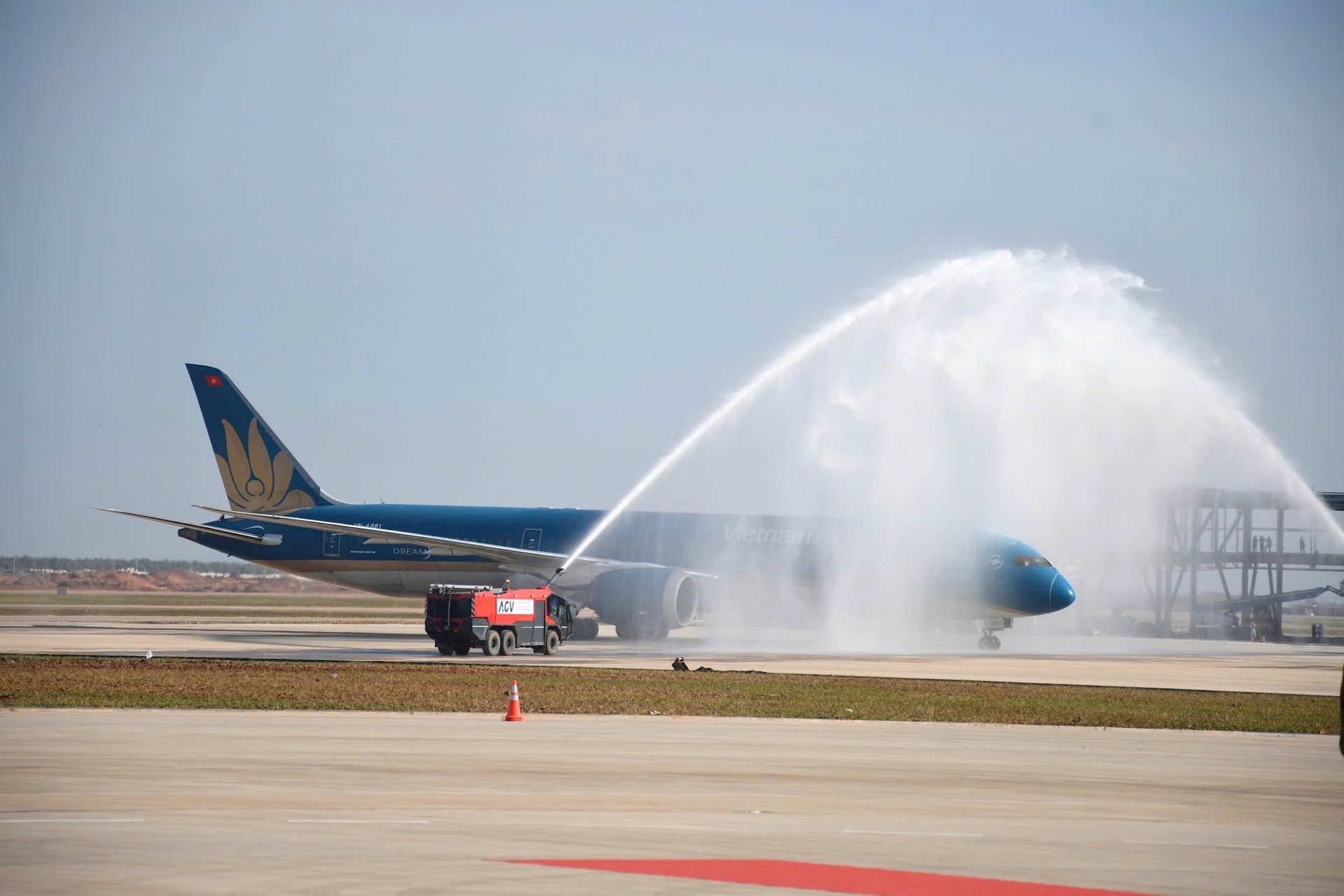 Theo ghi nhận của phóng viên Báo Hànôịmới, khoảng 8h40 ngày 19-12, máy bay Boieng 787 của Hãng hàng không quốc gia Việt Nam (Vietnam Airlines) đã hạ cánh xuống sân bay Long Thành trong chuyến bay chính thức đầu tiên đến sân bay này.