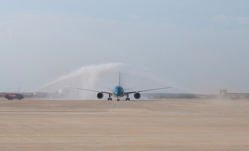 Nghi thức chào đón tàu bay thương mại đầu tiên hạ cánh xuống sân bay Long Thành vào chiều nay 15/12
