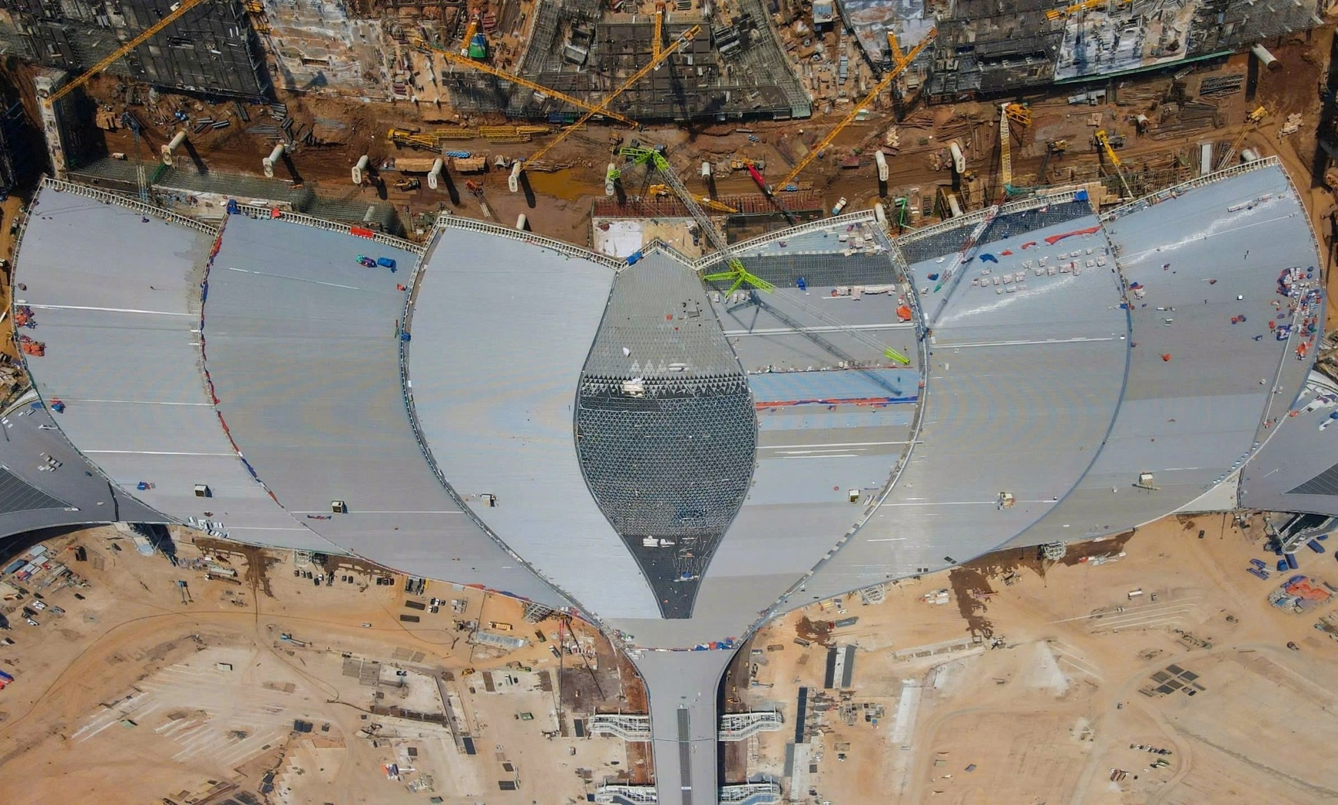 Hiện tại, phần mái của cả nhà ga trung tâm và ba "cánh sen" vươn ra ngoài đã cơ bản hoàn thành. Các đội thi công đang tập trung vào những công đoạn cuối cùng của phần mái và dự kiến hoàn tất phần xây dựng trước ngày 19/12.