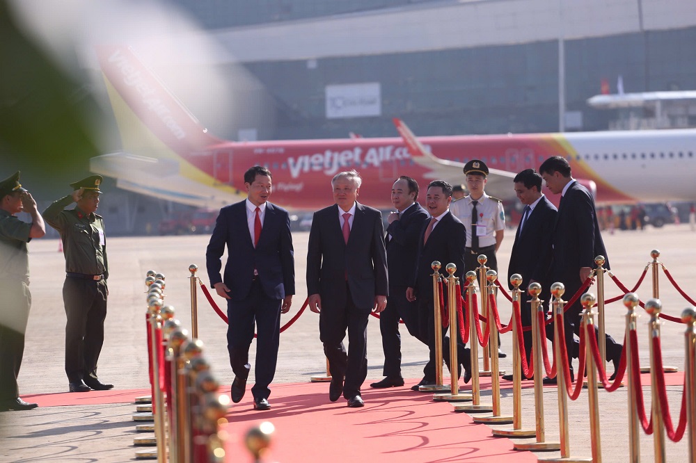 Tại sân bay quốc tế Long Thành, theo ghi nhận của Kinh tế Sài Gòn Online, đúng 8 giờ 20 phút, máy bay Boeing 787 mang số hiệu VN1, chở các lãnh đạo Đảng và Nhà nước, đã hạ cánh xuống sân bay.