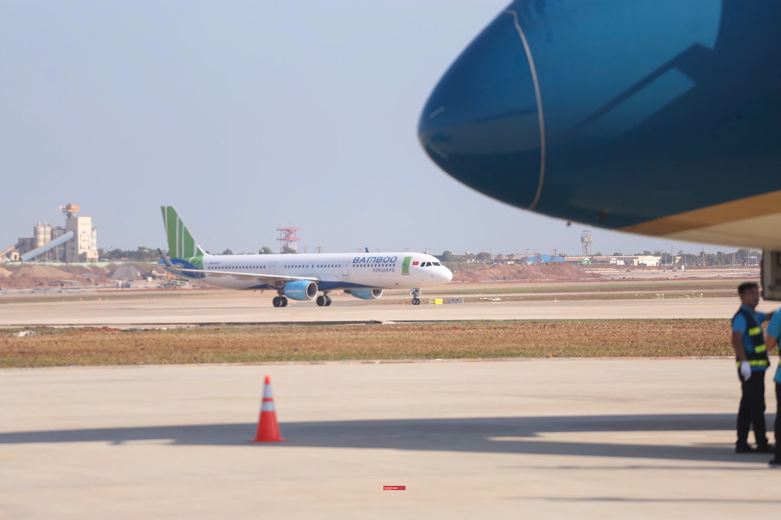 Tiếp đó, hai máy bay thân hẹp của Vietjet Air và Bamboo Airways xuất phát từ sân bay Tân Sơn Nhất lần lượt bay đến và hạ cánh xuống sân bay Long Thành, trên máy bay chở tổ bay và nhân viên kỹ thuật.