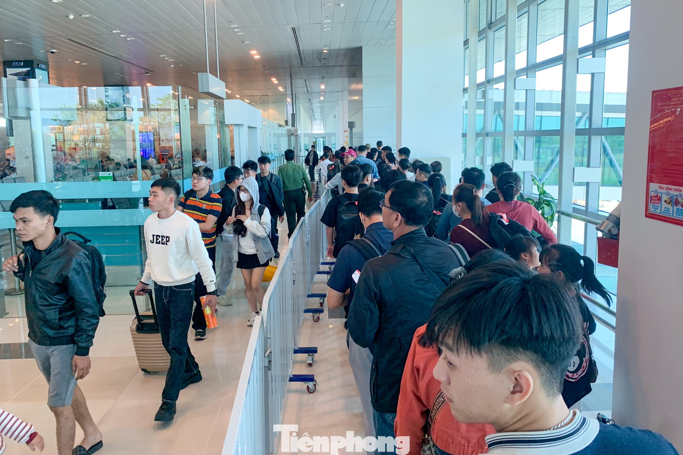 Khu vực quầy làm thủ tục và cửa soi chiếu an ninh đông kín người.