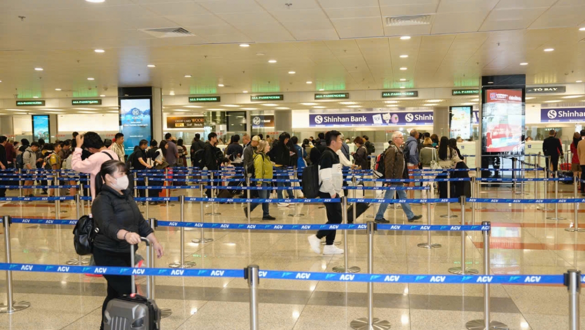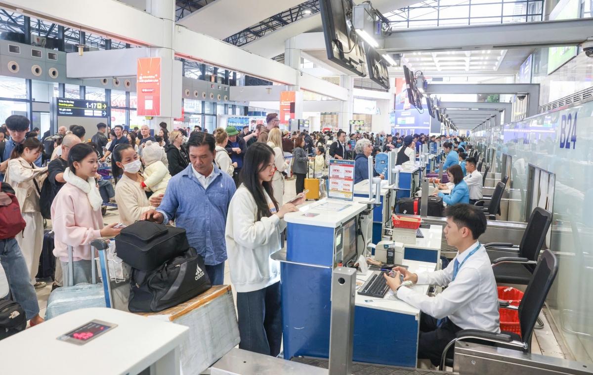 Lưu lượng hành khách và chuyến bay tăng mạnh khiến khu vực nhà ga, quầy thủ tục, soi chiếu an ninh và băng chuyền hành lý luôn trong tình trạng nhộn nhịp.
