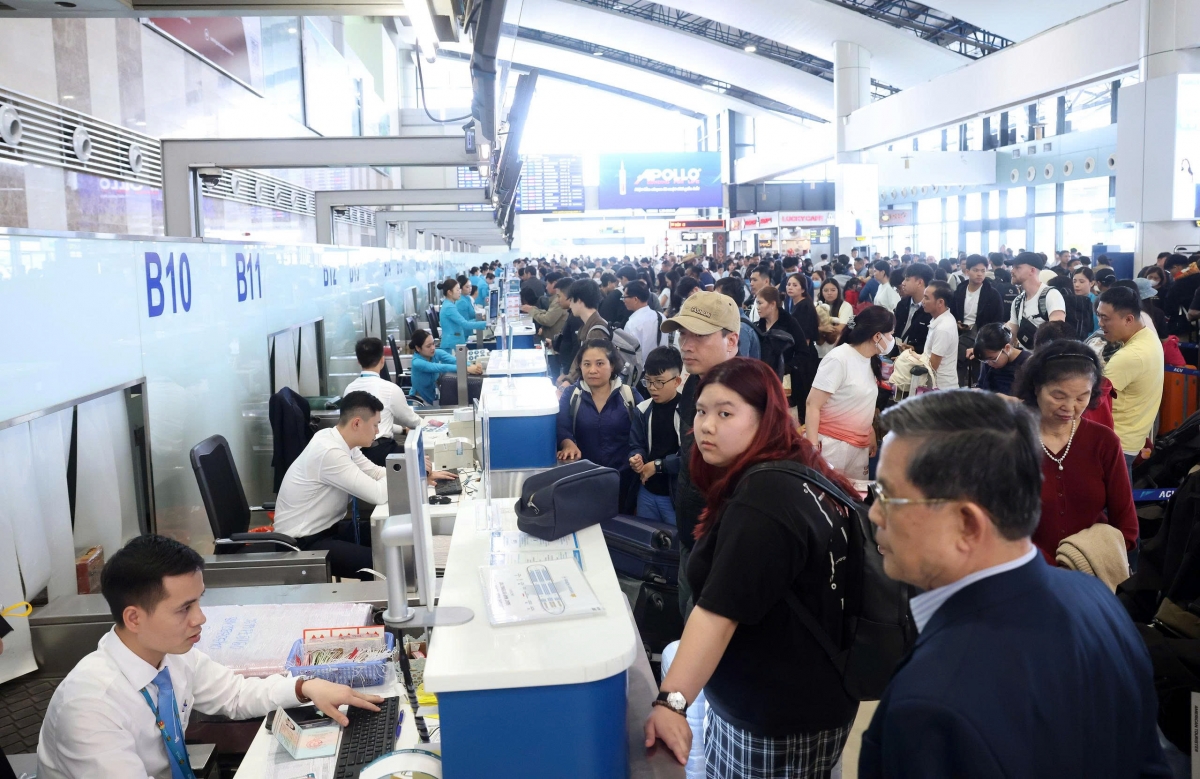 Cùng với đó, hệ thống thông tin chuyến bay, hướng dẫn hành khách và điều tiết dòng người được vận hành liên tục, góp phần hạn chế ùn ứ cục bộ trong giờ cao điểm.