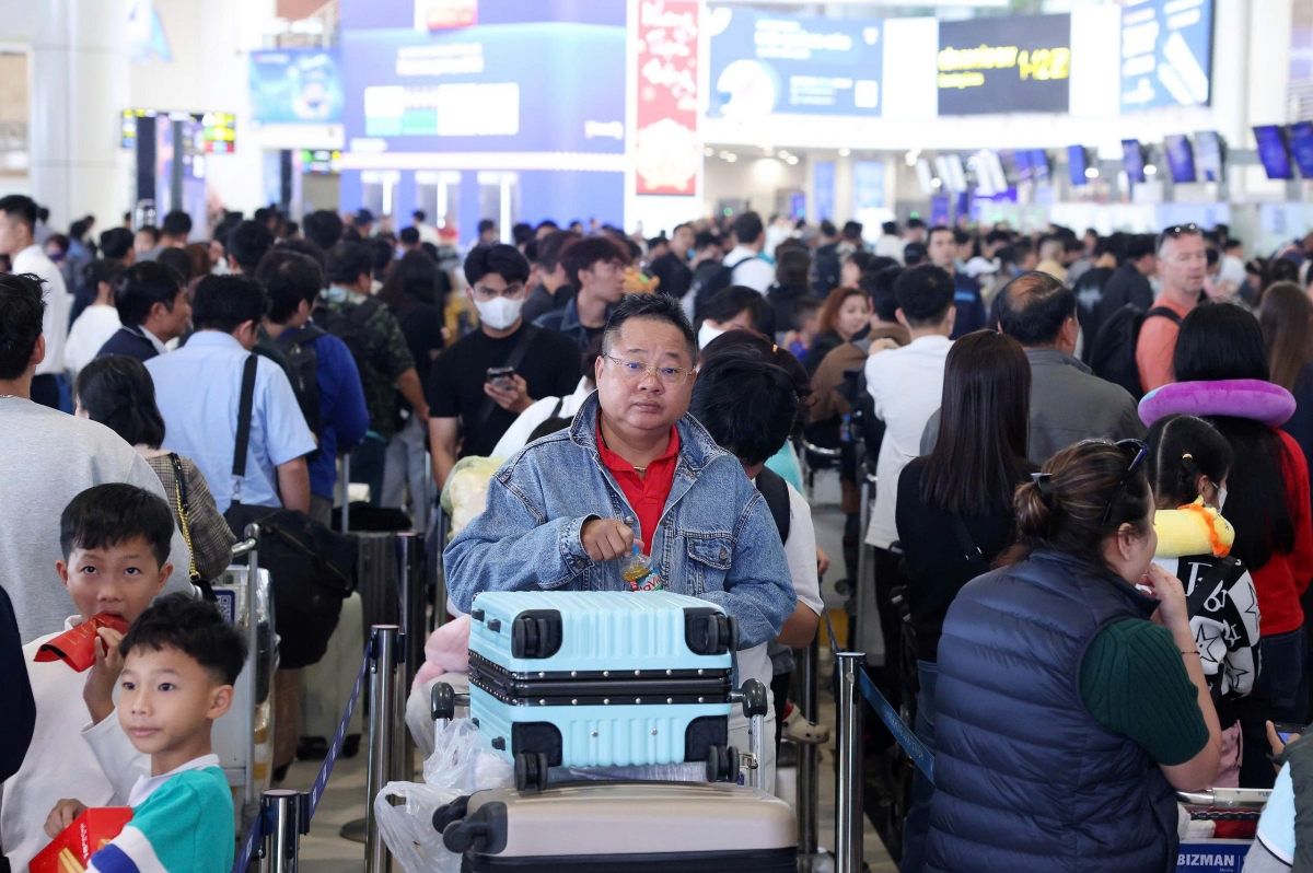 Sân bay Nội Bài đón lượng khách kỷ lục trong ngày cuối nghỉ Tết Bính Ngọ.