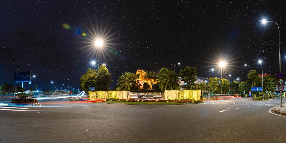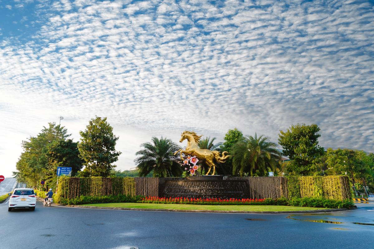 Tác phẩm linh vật Ngựa Vàng nổi bật trên đường vào Sân bay Quốc tế Đà Nẵng