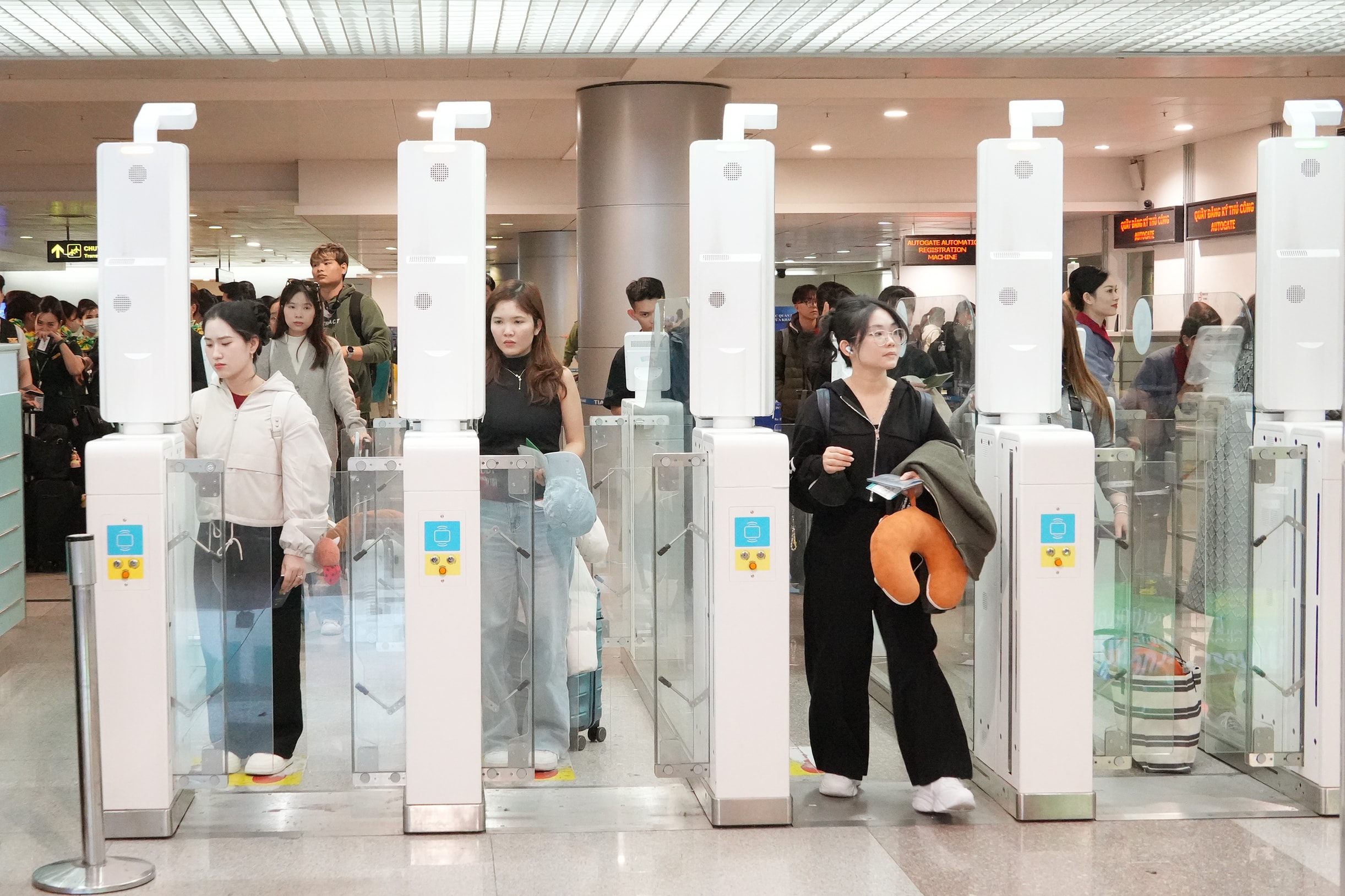 Hành khác dễ dàng làm thủ tục bằng hệ thống tự động tại sân bay Tân Sơn Nhất. Ảnh: Thạc Hiếu