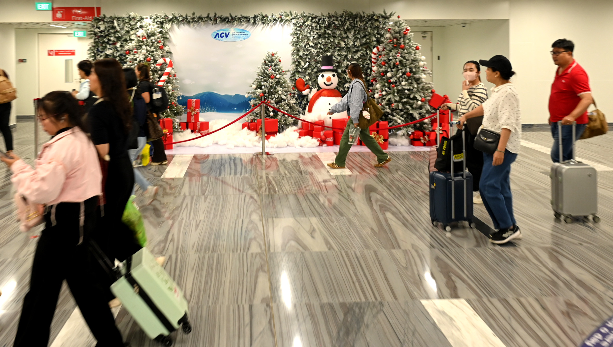 Nhà ga T3 trang trí rất đẹp để chào đón năm mới- Ảnh: QUỐC HÙNG