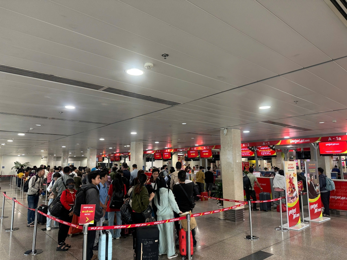 Hành khách làm thủ tục bay tại sân bay Tân Sơn Nhất dịp Tết Nguyên đán 2026. (Ảnh: M.Q)