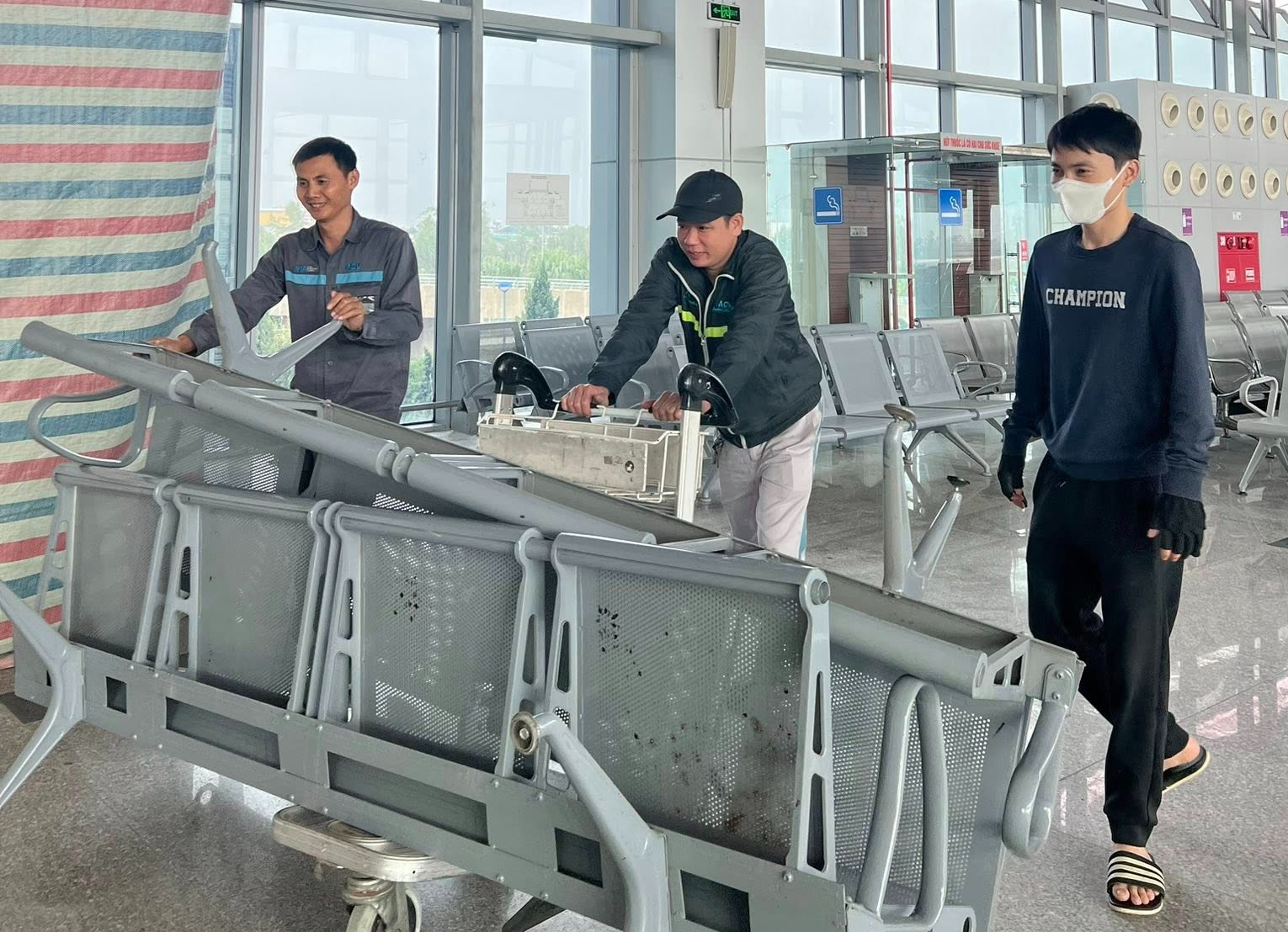Dù khối lượng công việc lớn và tiến độ gấp, các đơn vị vẫn huy động tối đa nhân lực nhằm kịp thời hoàn thiện công tác chuẩn bị cho ngày 19/12, thời điểm Cảng hàng không quốc tế Vinh hoạt động trở lại.