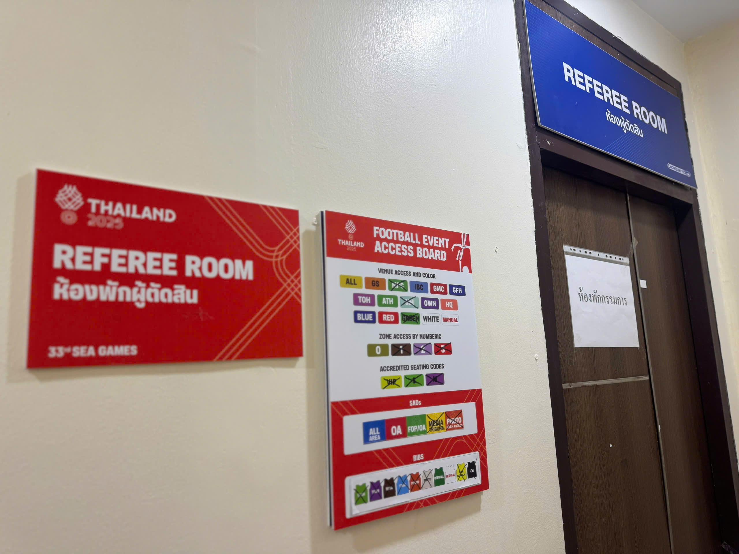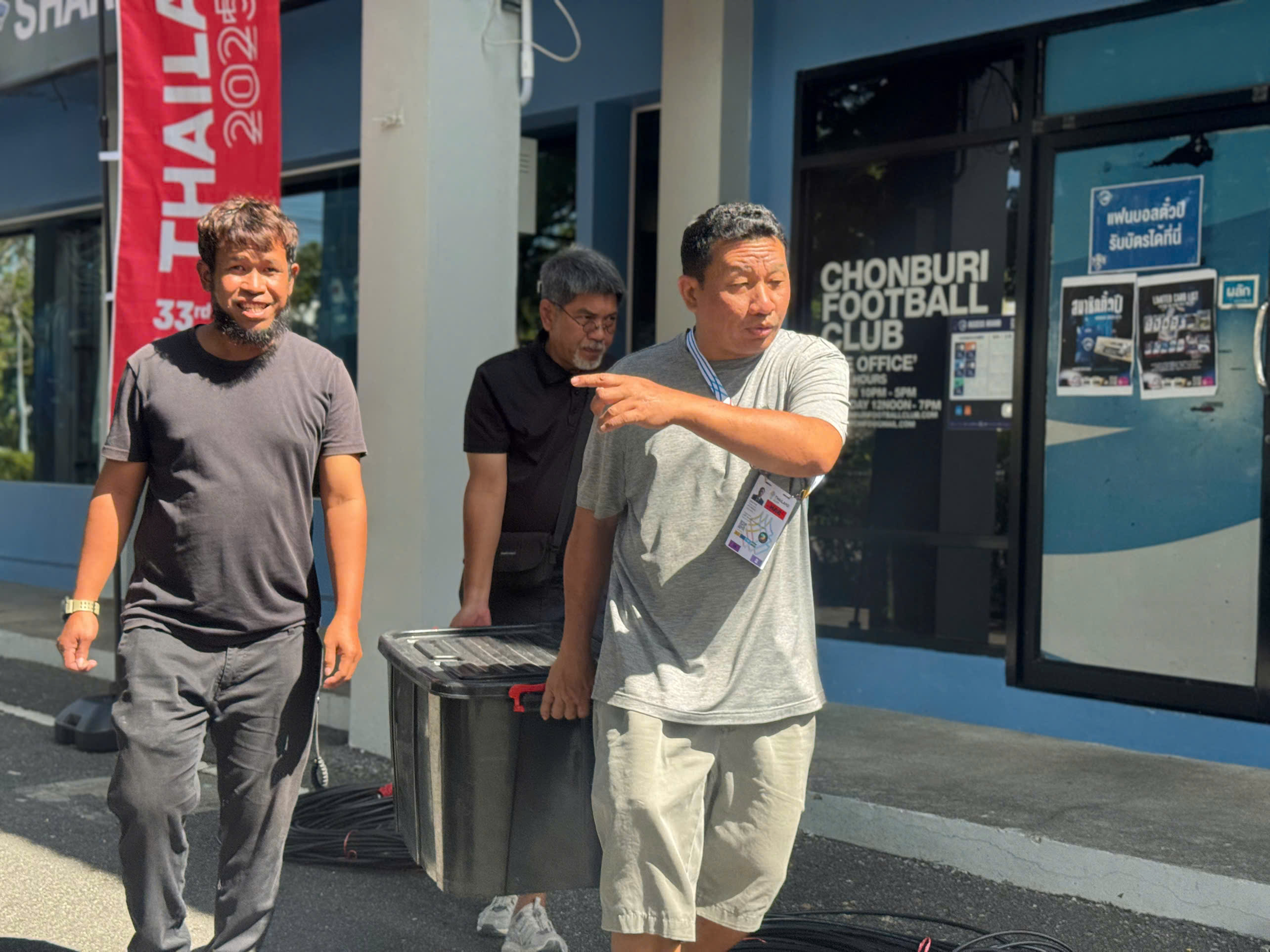 Cùng thời điểm, các nhân viên của đài truyền hình nước chủ nhà đã di chuyển thiết bị đến sân để lắp đặt. Khi phóng viên Việt Nam đến ghi hình cũng nhận được sự hỗ trợ tốt nhất từ các nhân viên Liên đoàn Bóng đá Thái Lan (FAT) cũng như đội ngũ tình nguyện viên.