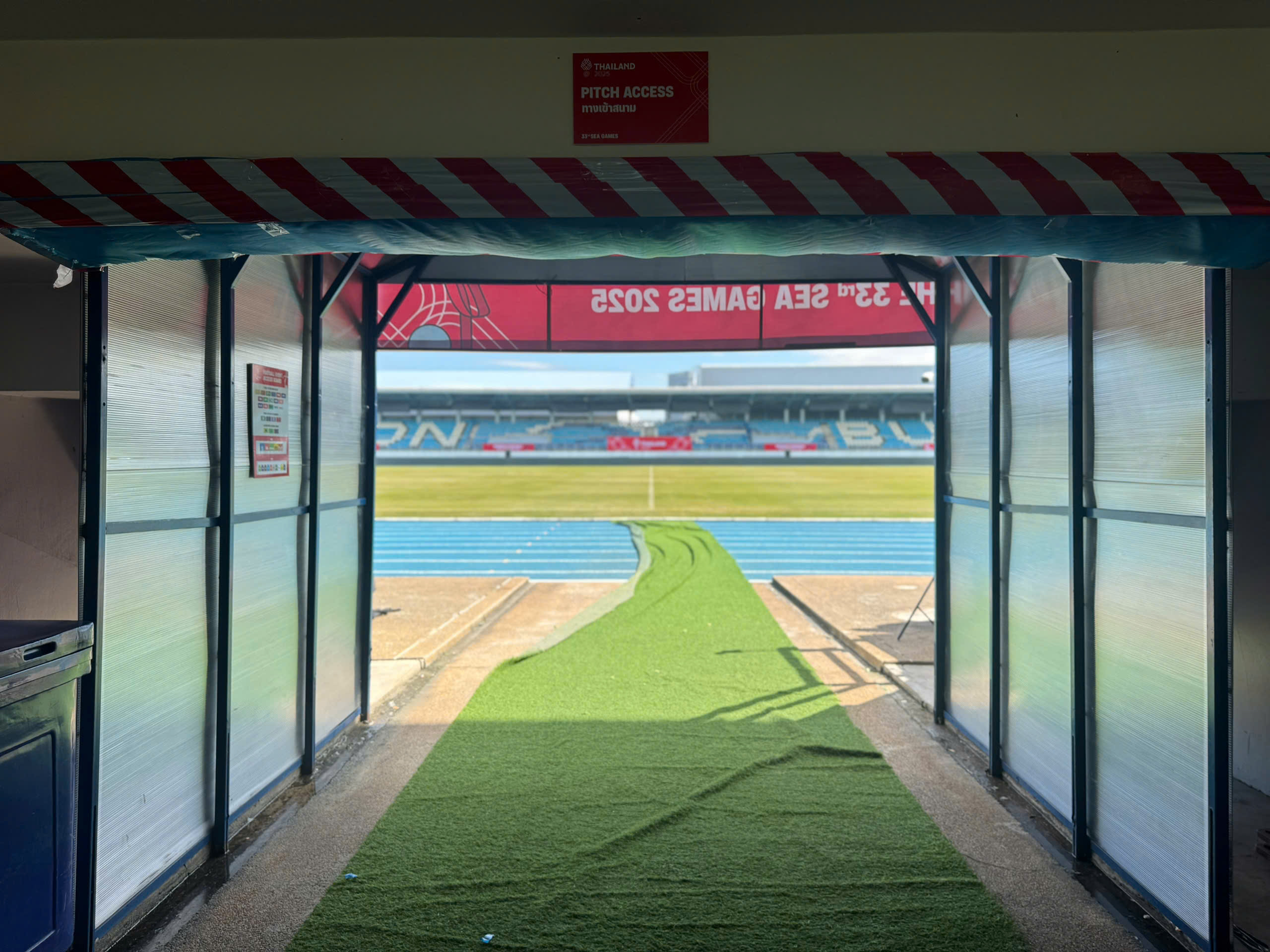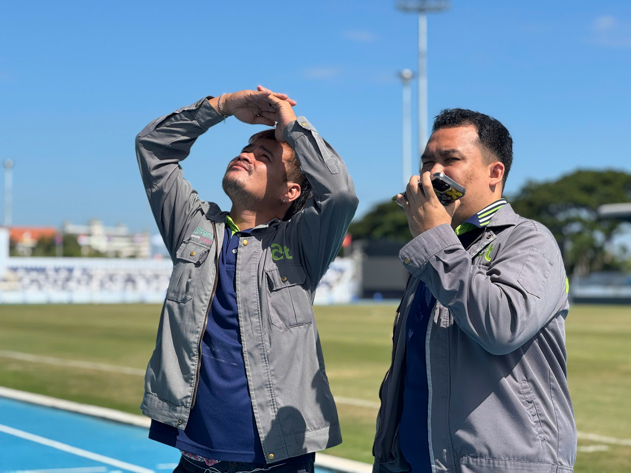 Một nhân viên kỹ thuật cho biết: “Tôi là thợ chăm sóc dàn đèn tại sân Chonburi. Công việc của tôi bắt đầu từ 10 giờ sáng đến chiều tối. Chúng tôi đã bắt đầu chuẩn bị cho SEA Games 33 khoảng gần một tháng. Về cơ bản, mọi thứ gần như sẵn sàng cho trận đầu tiên của môn bóng đá nữ”.