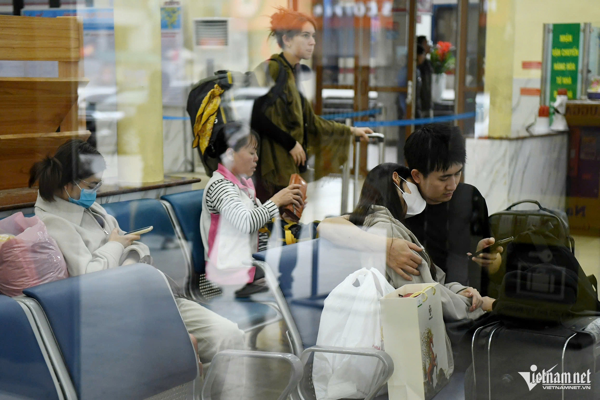 Hành khách xếp hàng kiểm tra vé trước khi lên tàu. Trong thời khắc rời thành phố trở về quê nhà, ai nấy đều háo hức, mong chờ những ngày sum vầy bên gia đình.