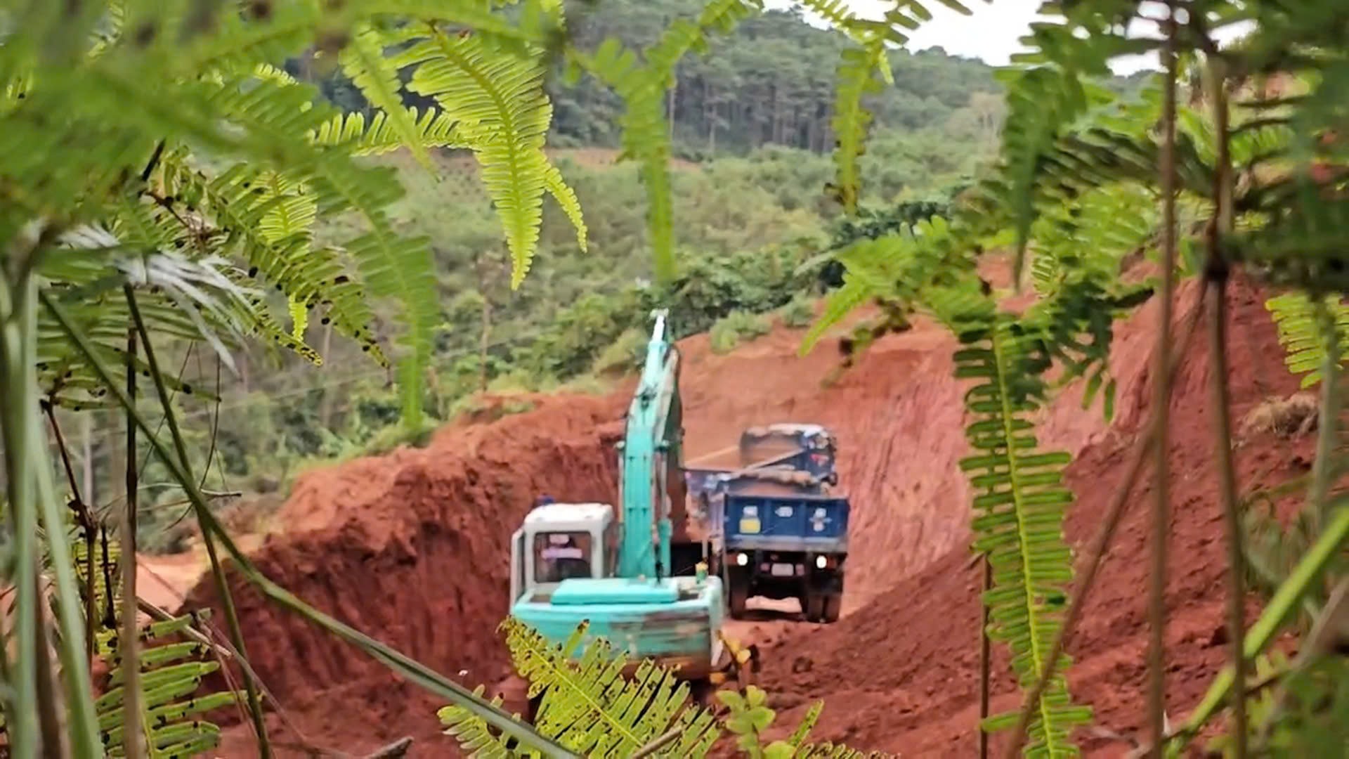 Hoạt động san gạt đất trái phép tại rừng thông xã Bảo Lâm 4