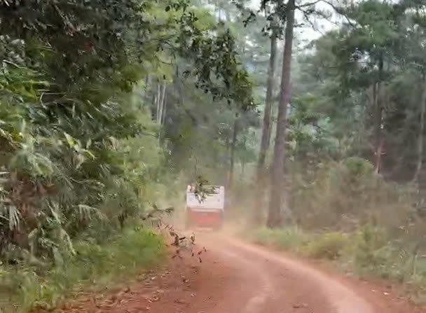 Xe vận chuyển đất đến điểm đổ ở buôn Hang Lang - Thôn 5 Lộc Phú (xã Bảo Lâm 4, tỉnh Lâm Đồng). Ảnh cắt từ clip