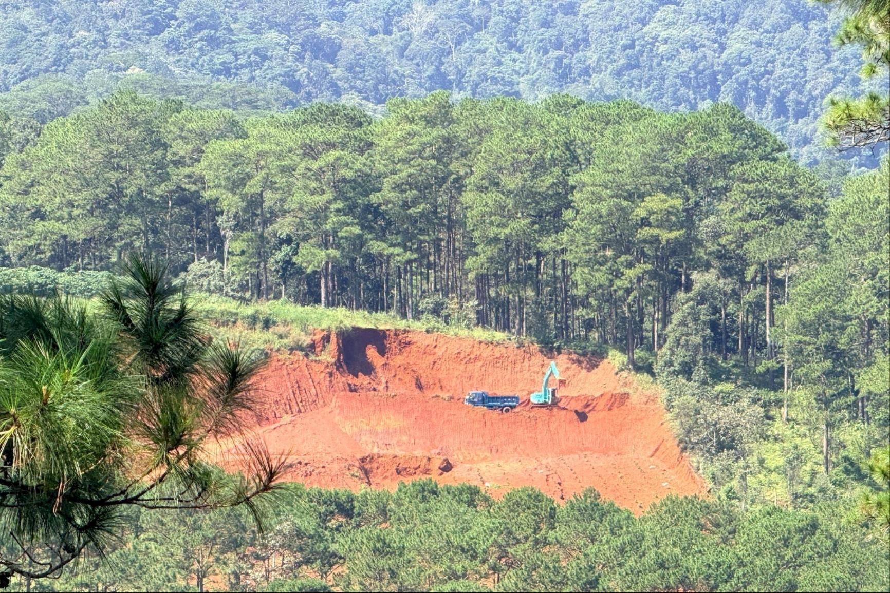 Đất đồi sát rừng thông tại khu vực ngay cổng chào xã Lộc Lâm cũ (nay là xã Bảo Lâm 4, tỉnh Lâm Đồng) được đào múc ngang nhiên giữa ban ngày