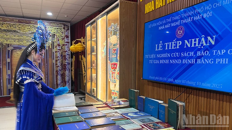 Tại lễ đón nhận, ông Đinh Thành Tâm, người con trai trưởng của Nghệ sĩ Nhân dân Đinh Bằng Phi đã đại diện gia đình trao cho Nhà hát nghệ thuật Hát bội Thành phố nhiều tư liệu nghiên cứu, sách, báo, tạp chí về sân khấu, nghệ thuật Hát bội.