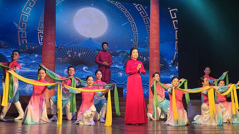 Một tiết mục trong chương trình nghệ thuật đặc biệt do Nhà hát Cải lương Trần Hữu Trang tổ chức. (Ảnh NGỌC TUYẾT)