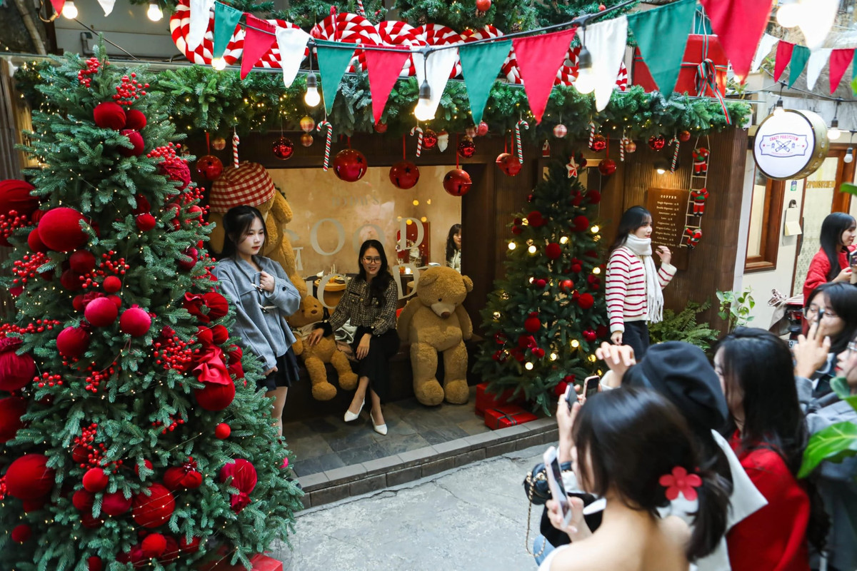 Các quán cà phê và cửa hàng tại đây đồng loạt thay đổi trang trí, tạo thành tuyến phố lễ hội sôi động, rất thích hợp để ghi lại những bộ ảnh mùa Giáng sinh. Ảnh Znews