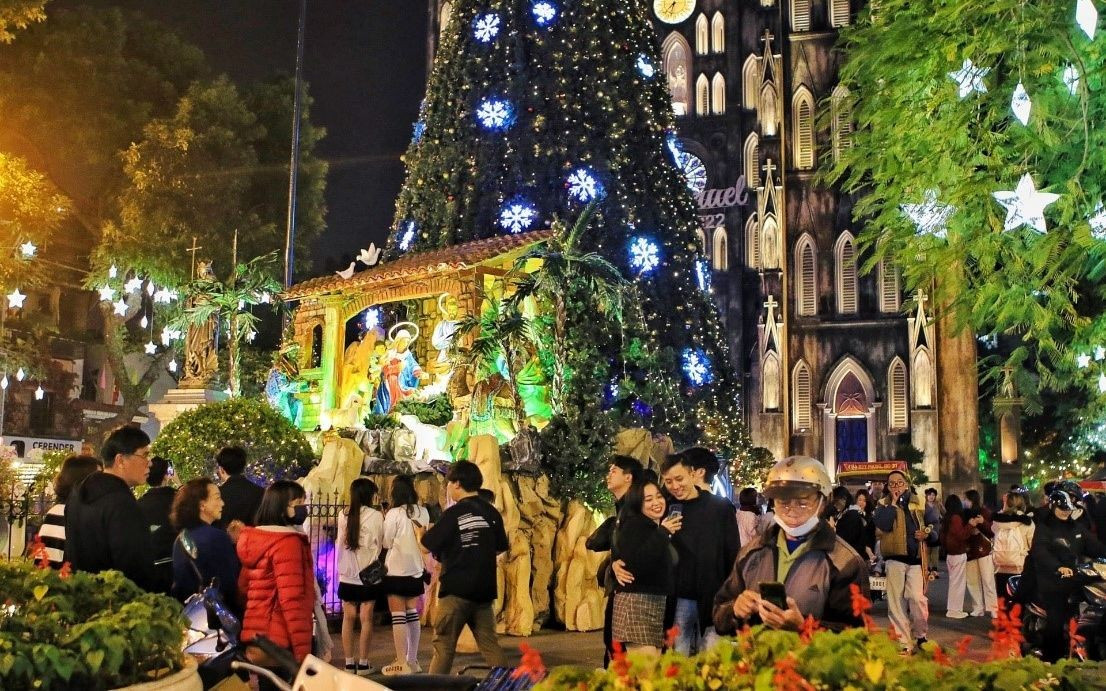 Giáng sinh đang nhuộm sắc khắp các con phố Hà Nội, mang đến không khí rực rỡ và ấm áp. Từ những nhà thờ cổ kính đến các trung tâm thương mại lộng lẫy, thủ đô trở thành điểm đến lý tưởng để du khách và người dân lưu giữ những khoảnh khắc lễ hội cuối năm. Ảnh Vinpearl