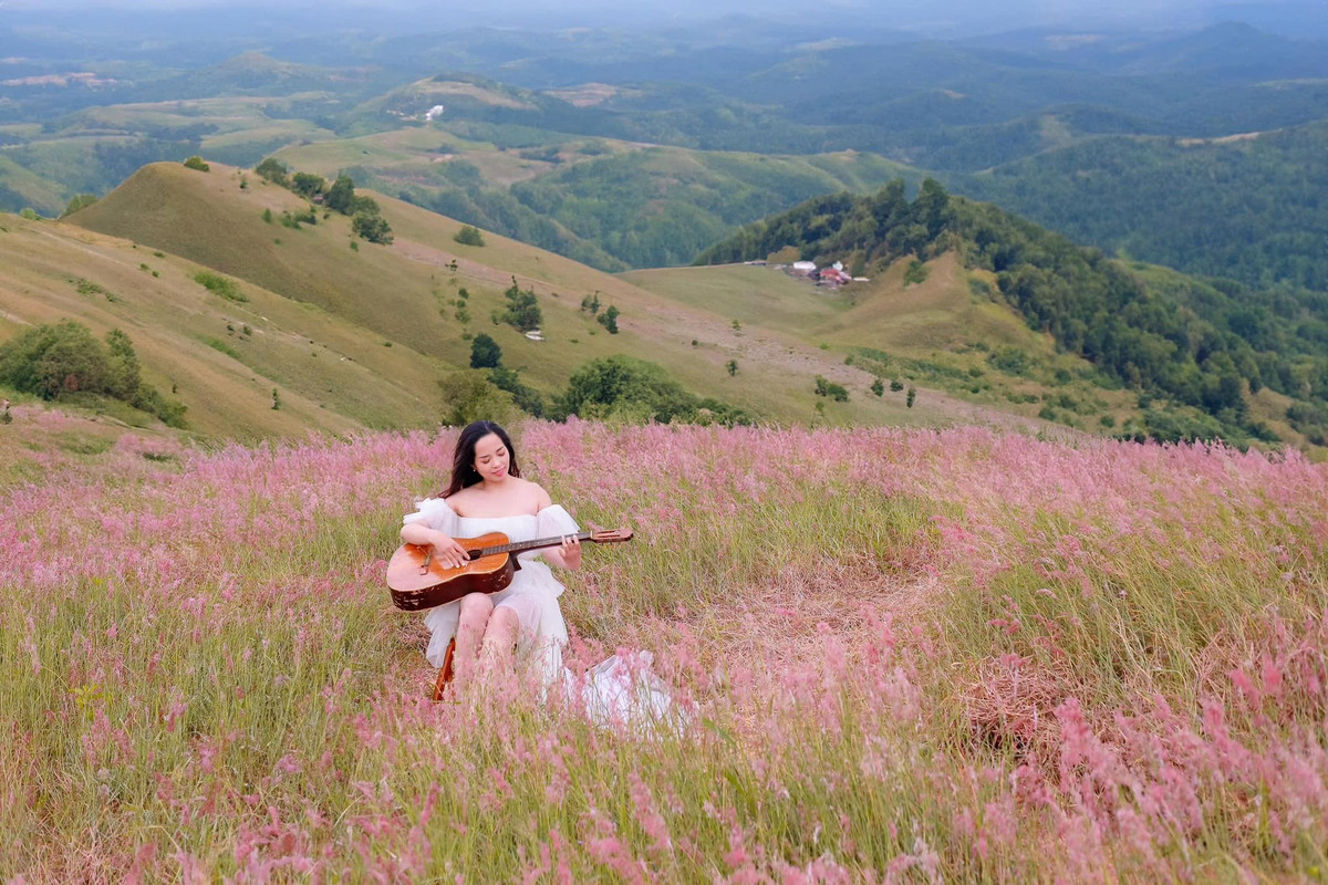 Mỗi mùa, đồi cỏ hồng lại mang một diện mạo khác nhau. Vào khoảng tháng 5 – 6, những bông cỏ bung nở với sắc hồng phớt nhẹ, hòa cùng nắng vàng rực rỡ của mùa hè. Ảnh Quang Nguyễn