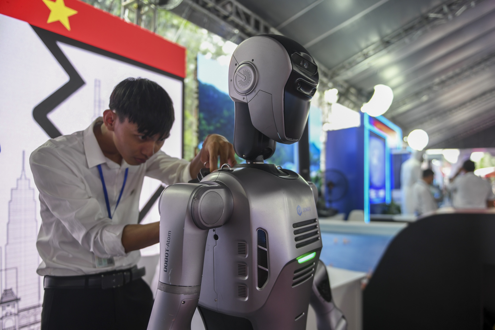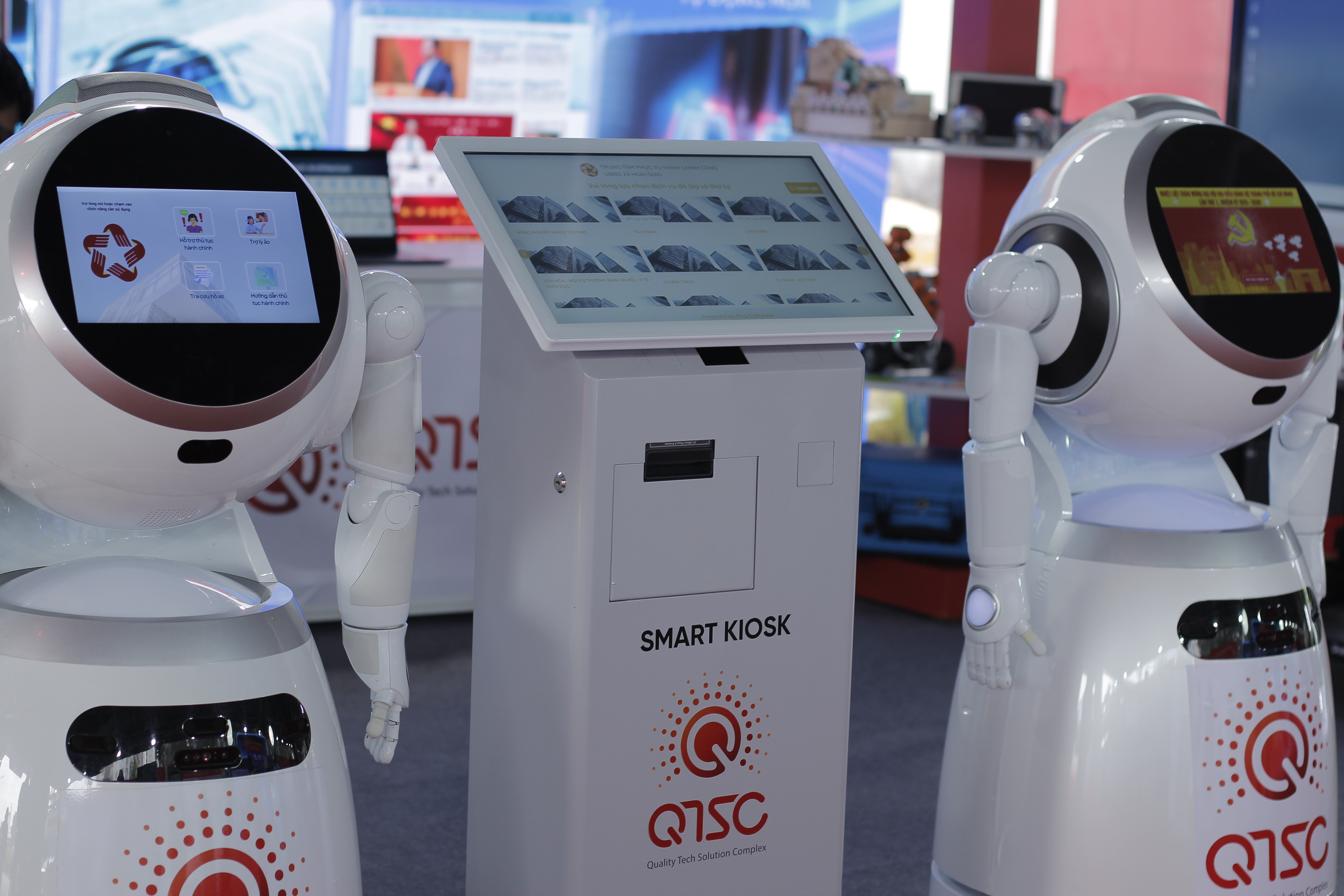 Các doanh nghiệp hoạt động trong lĩnh vực công nghệ thông tin, điện tử, AI và IoT như CMC, Viettel, QTSC, Mobifone giới thiệu hệ sinh thái AI, nền tảng chuyển đổi số, giải pháp an ninh mạng, robot hành chính, kiosk thông minh và camera Edge AI tiên tiến.
