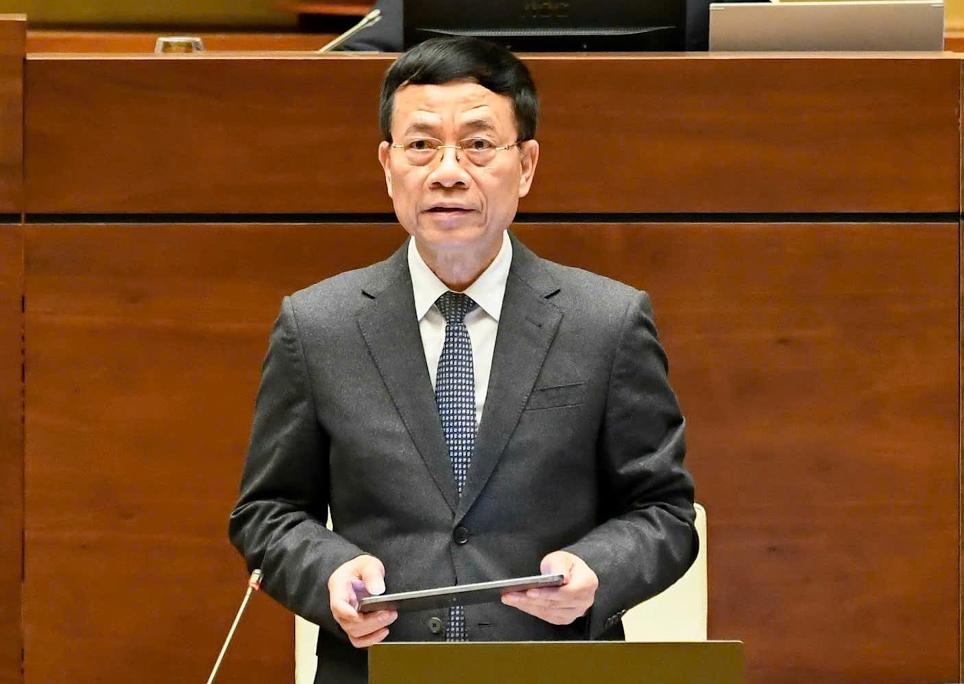 Bộ trưởng Bộ KH-CN Nguyễn Mạnh Hùng phát biểu giải trình, làm rõ một số vấn đề đại biểu Quốc hội nêu, sáng 24-11. Ảnh VIẾT CHUNG