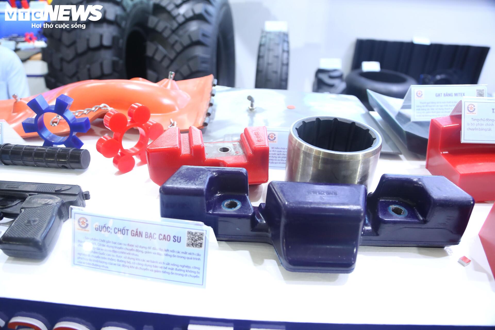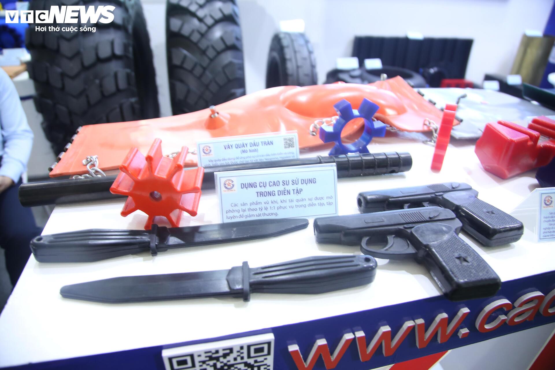 Các sản phẩm tại gian hàng của Công ty TNHH MTV Cao su 75. Theo đại diện công ty, khi tham gia Hội chợ mùa Thu lần thứ nhất 2025, mục tiêu của công ty là quảng bá hình ảnh, khẳng định thương hiệu và năng lực sản xuất của một doanh nghiệp công nghiệp quốc phòng có khả năng chuyển giao sản phẩm ra thị trường dân dụng và xuất khẩu.