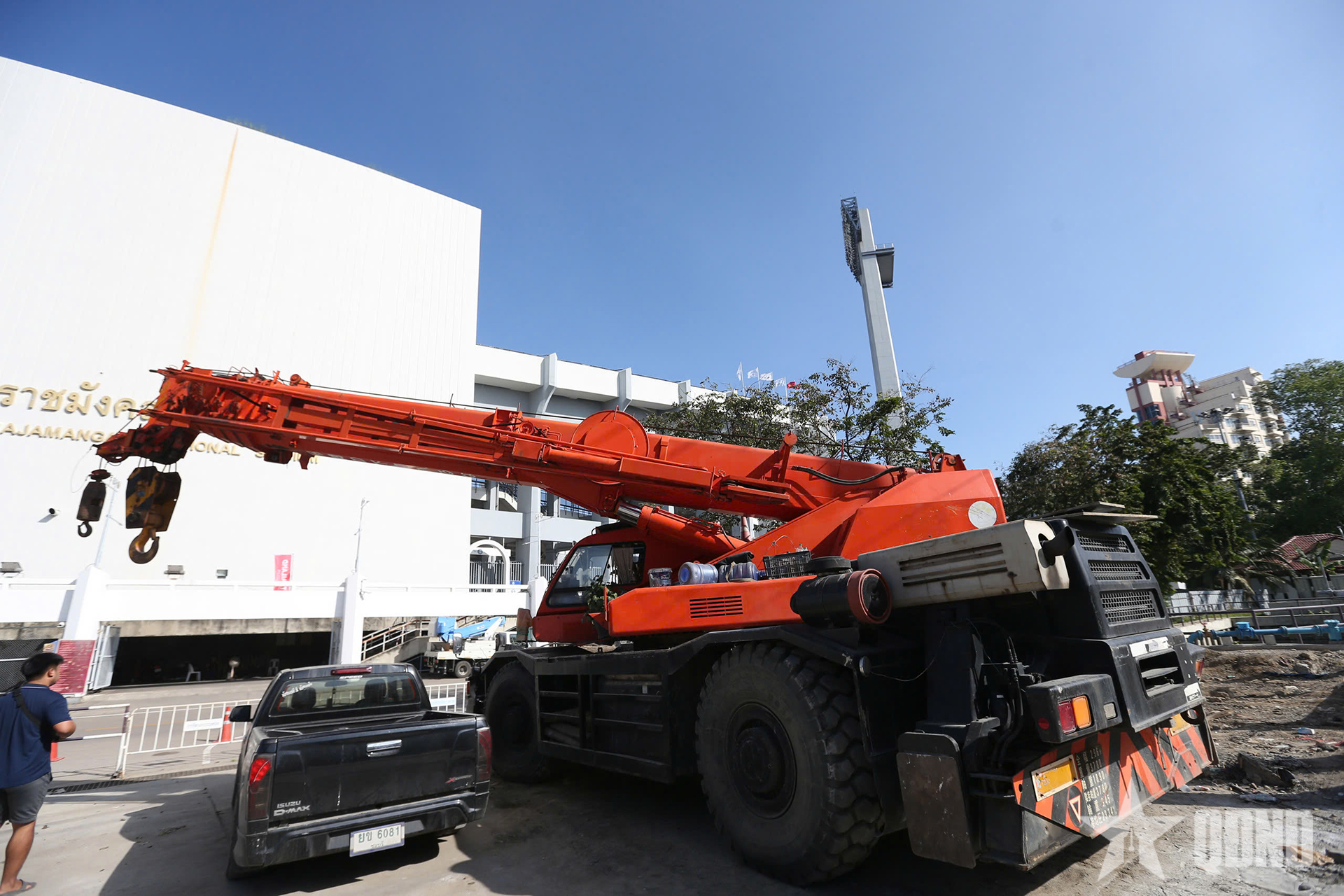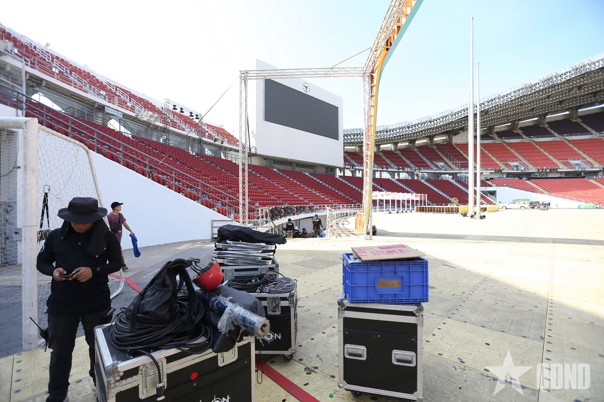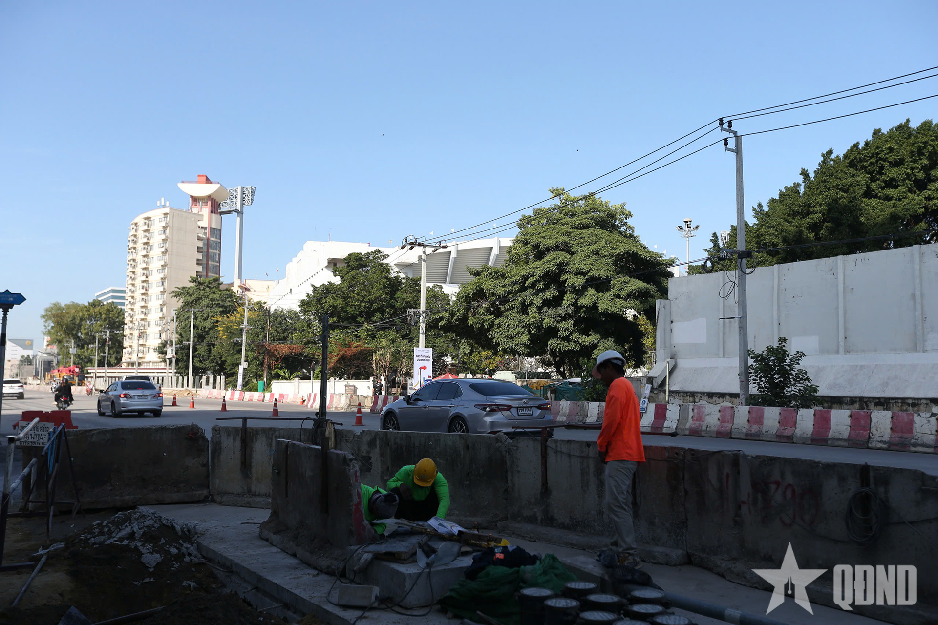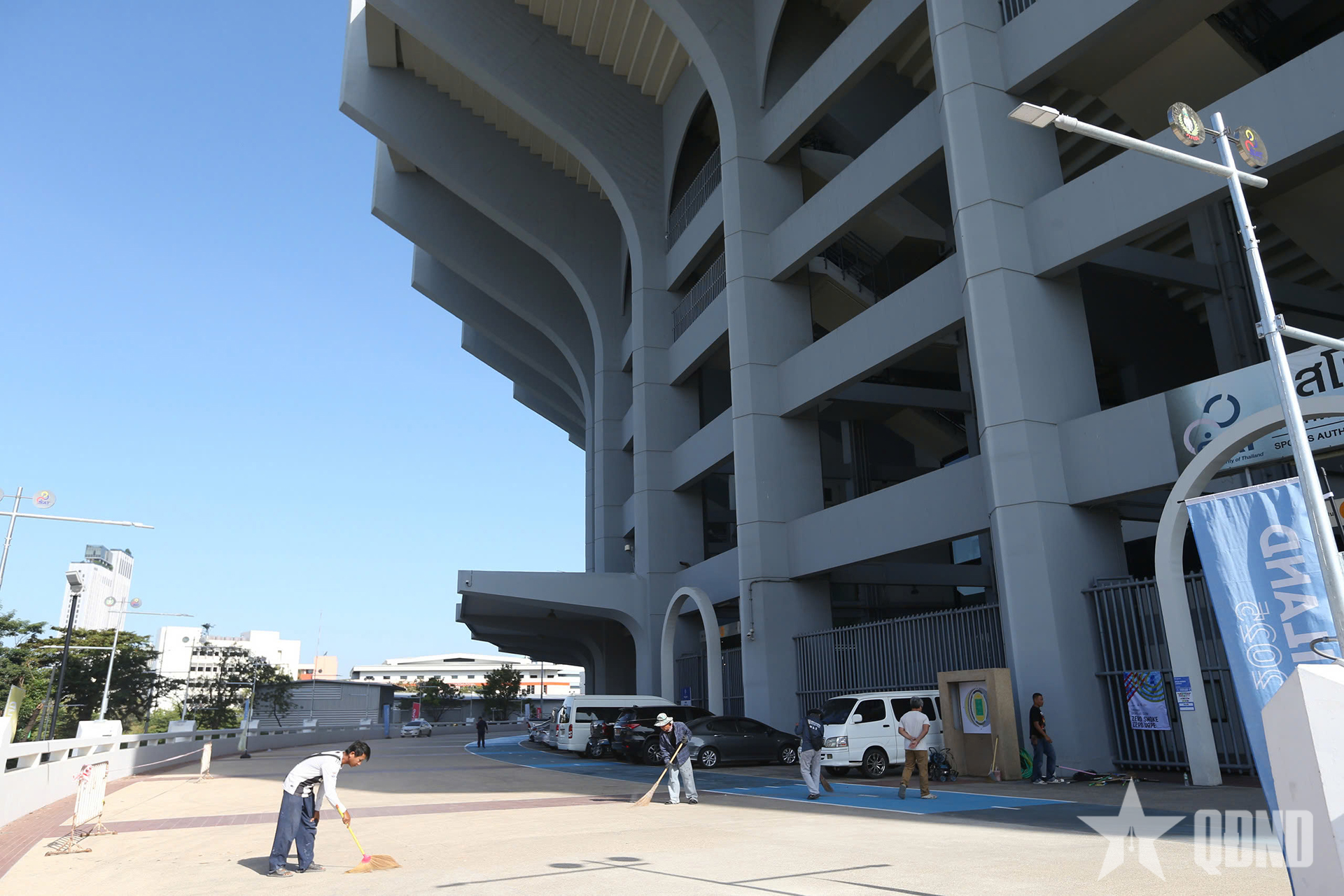 Theo ghi nhận, xung quanh sân vận động Rajamangala vẫn còn khá ngổn ngang các hạng mục chuẩn bị cho lễ khai mạc. Các công nhân đang tất bật làm thêm cả ca đêm để kịp tiến độ.