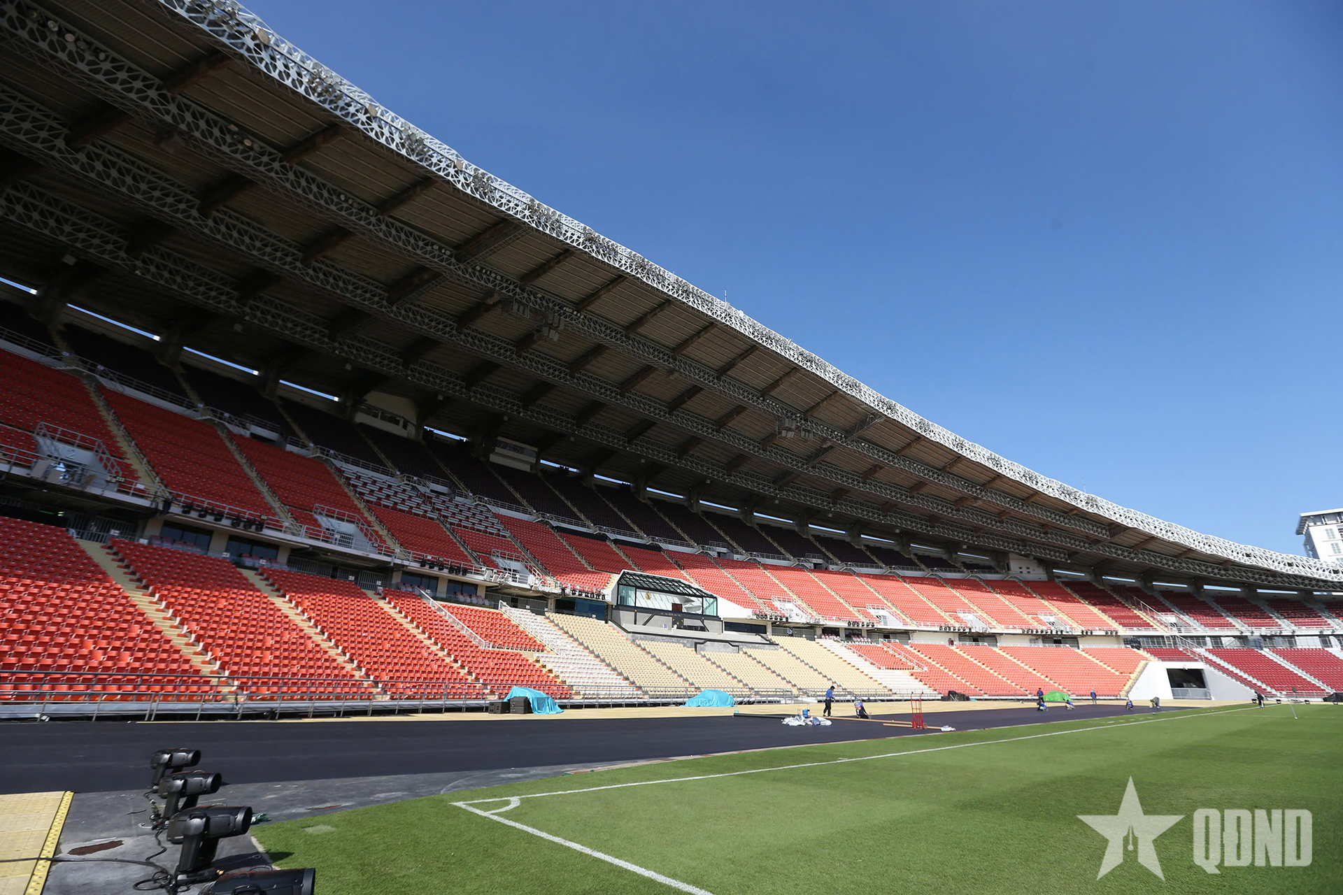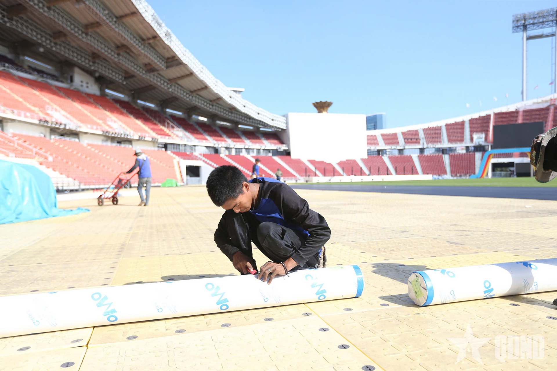 Bên trong sân vận động Rajamangala, các hạng mục đang được hoàn thiện. Hàng trăm công nhân đang lắp đặt thiết bị âm thanh, ánh sáng, mặt sân... Tất cả đều đang chạy đua với thời gian trước lễ khai mạc.