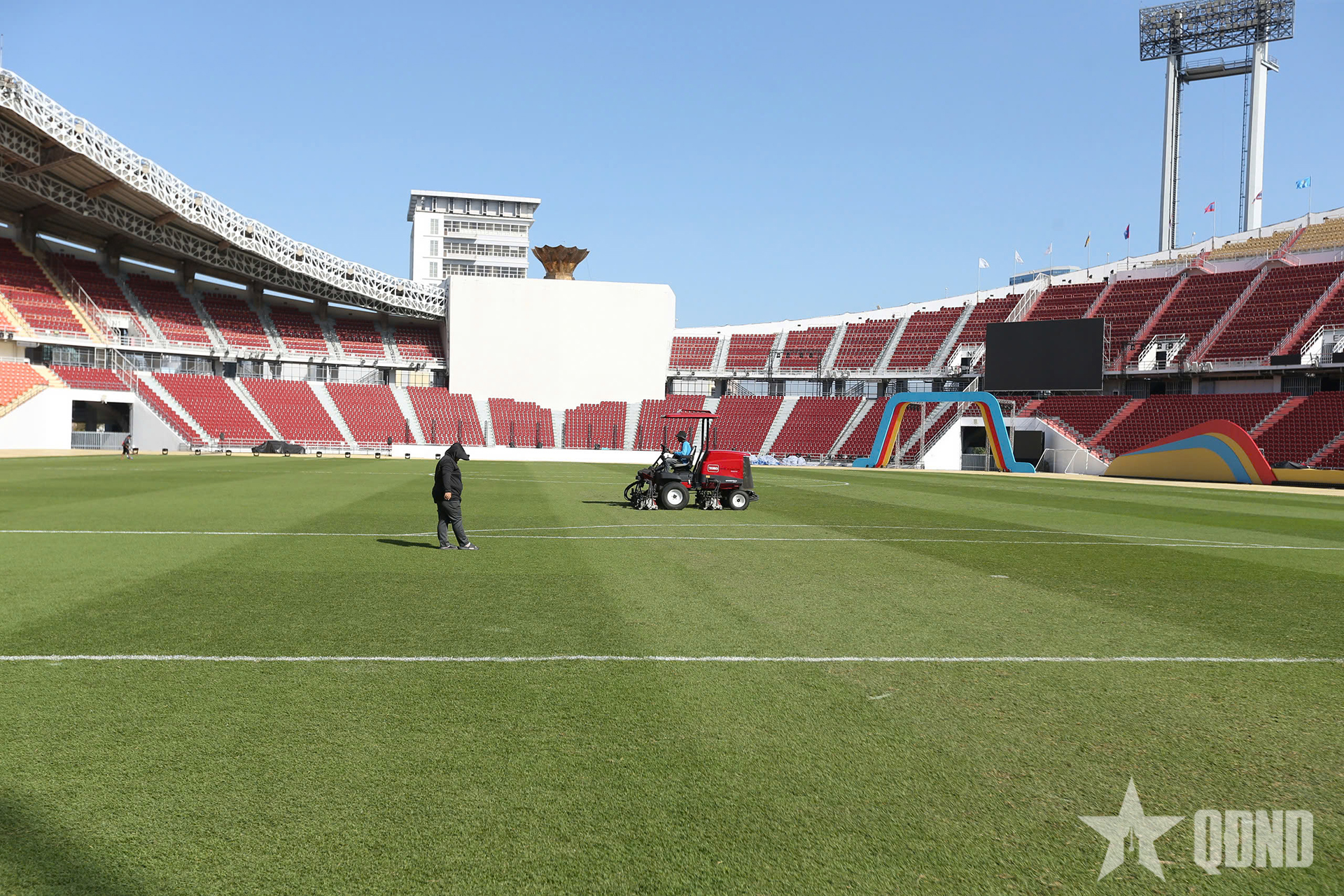 Các công nhân dọn dẹp vệ sinh xung quanh sân Rajamangala.