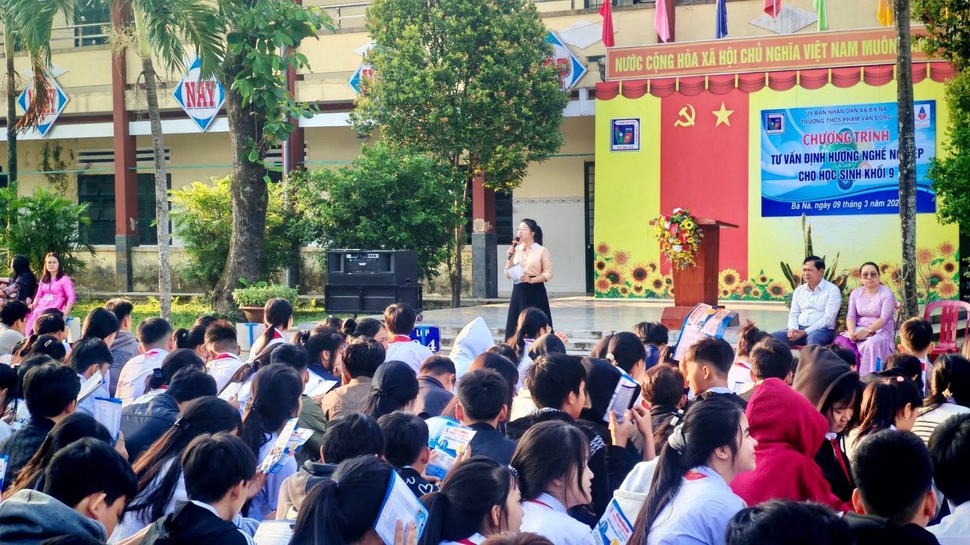 Học sinh Trường THCS Phạm Văn Đồng (xã Bà Nà) trong buổi tư vấn định hướng nghề nghiệp cho học sinh khối 9. Ảnh: CAO MINH.