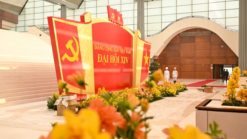 Công tác trang trí, khánh tiết tại Trung tâm Hội nghị quốc gia - nơi dự kiến diễn ra Đại hội XIV của Đảng dã hoàn tất.