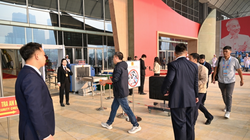 Lực lượng cảnh vệ kiểm tra, rà soát chặt chẽ người có nhiệm vụ ra vào Đại hội.