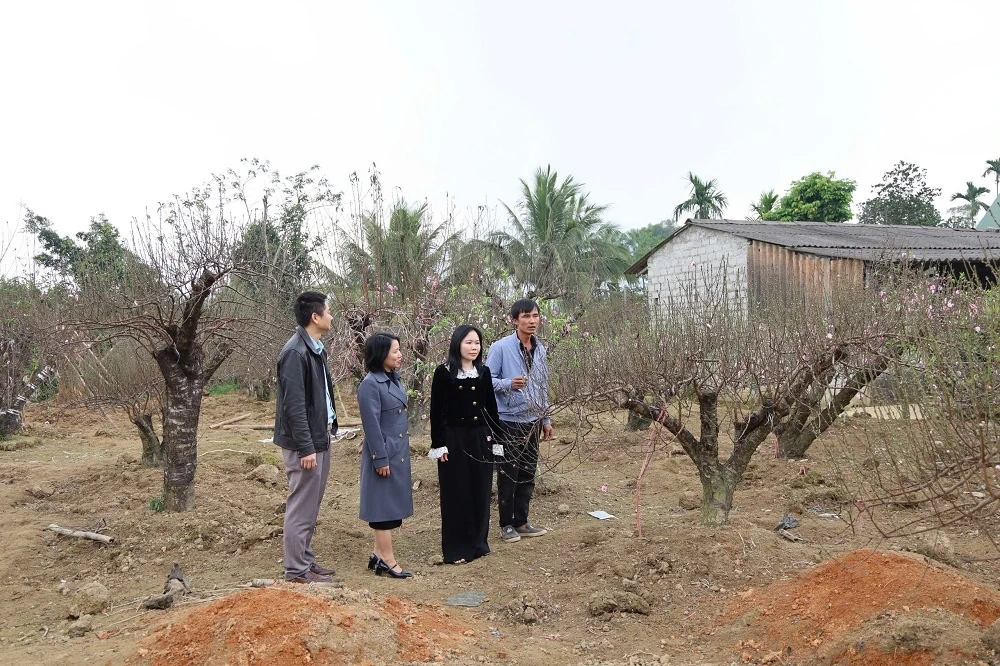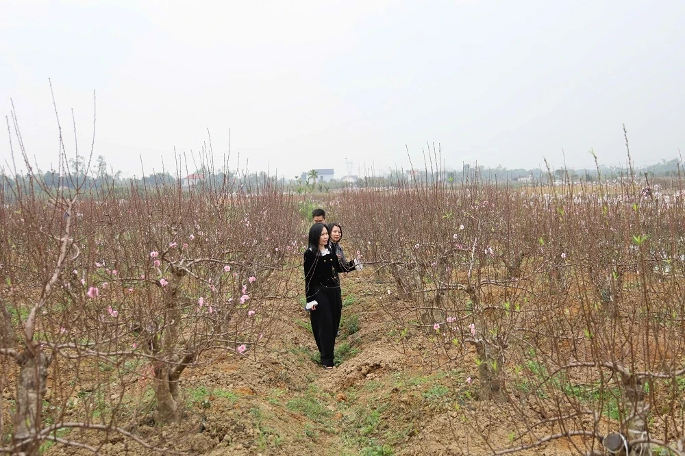 Gia đình chị Lê Thị Thúy (thôn Cát Lợi) năm nay trồng được 450 cây đào, hiện đã bán được khoảng 400 cây. Một số cây đẹp đang được chăm sóc để tham gia Hội chợ Hoa đào – Hoa cây cảnh Xuân Bính Ngọ.