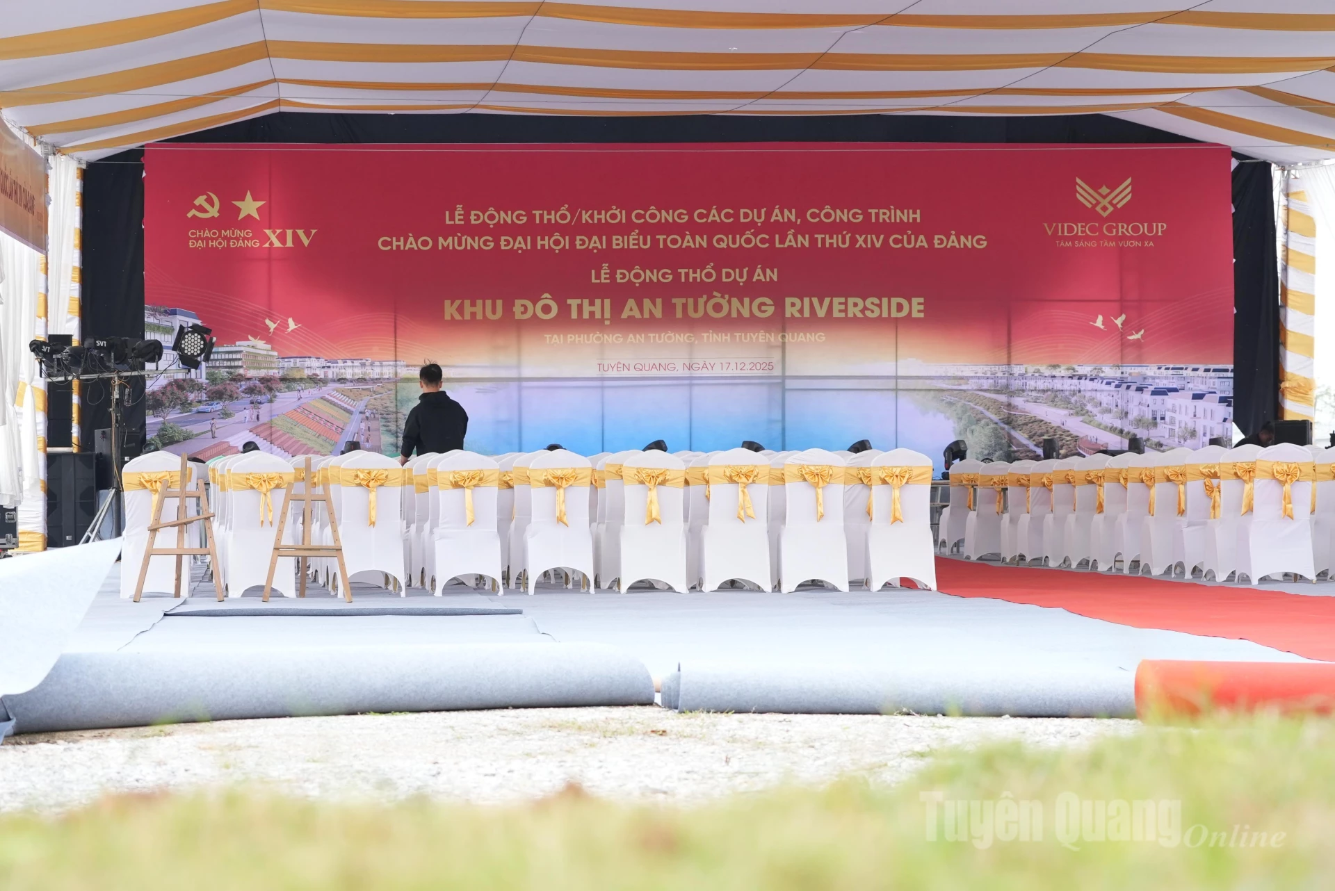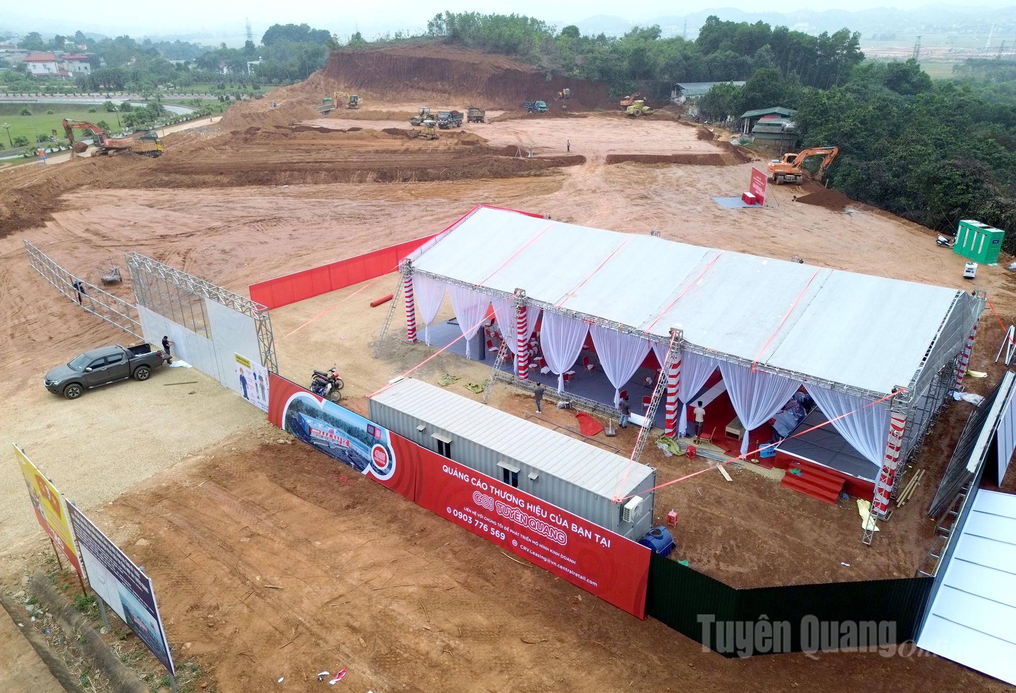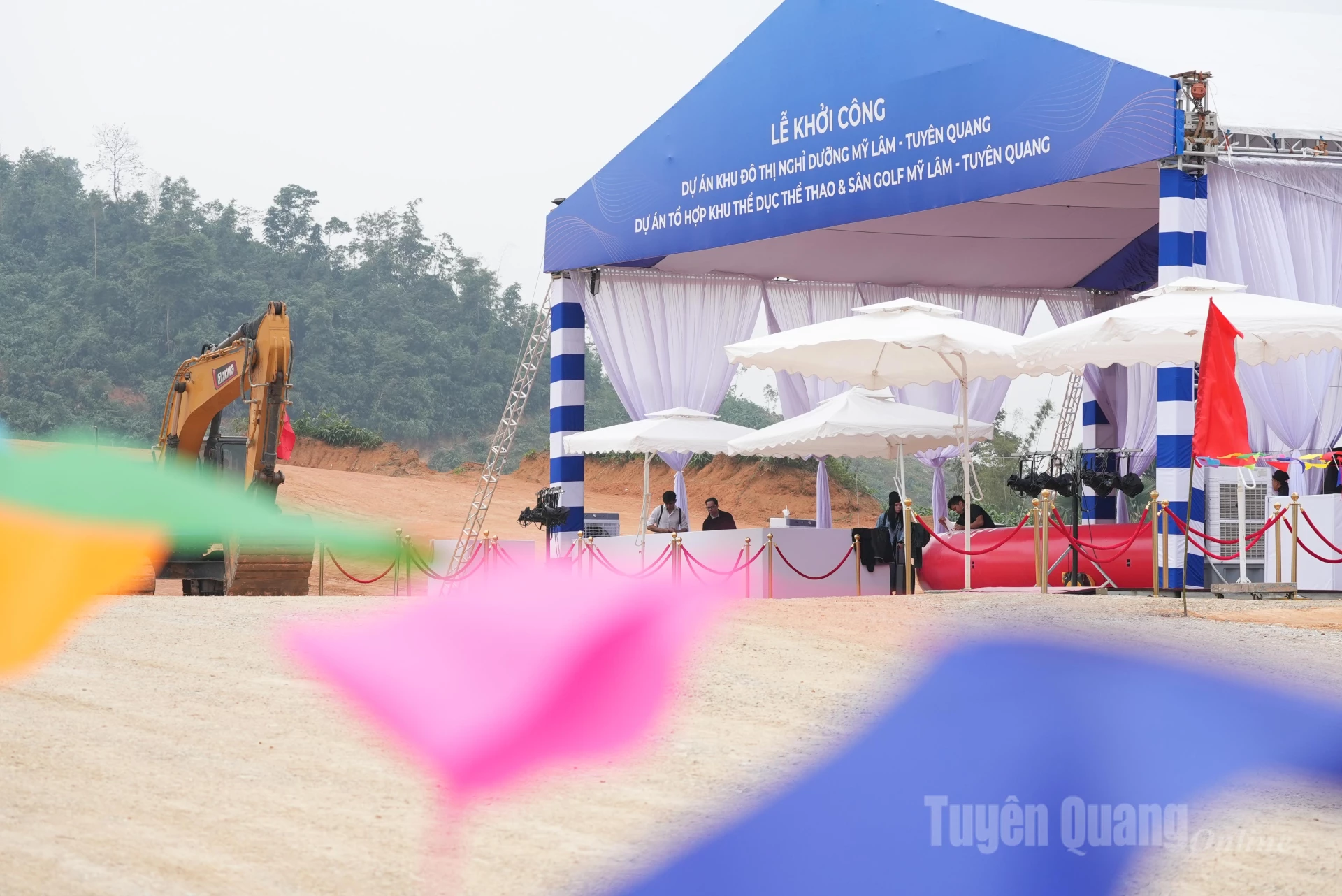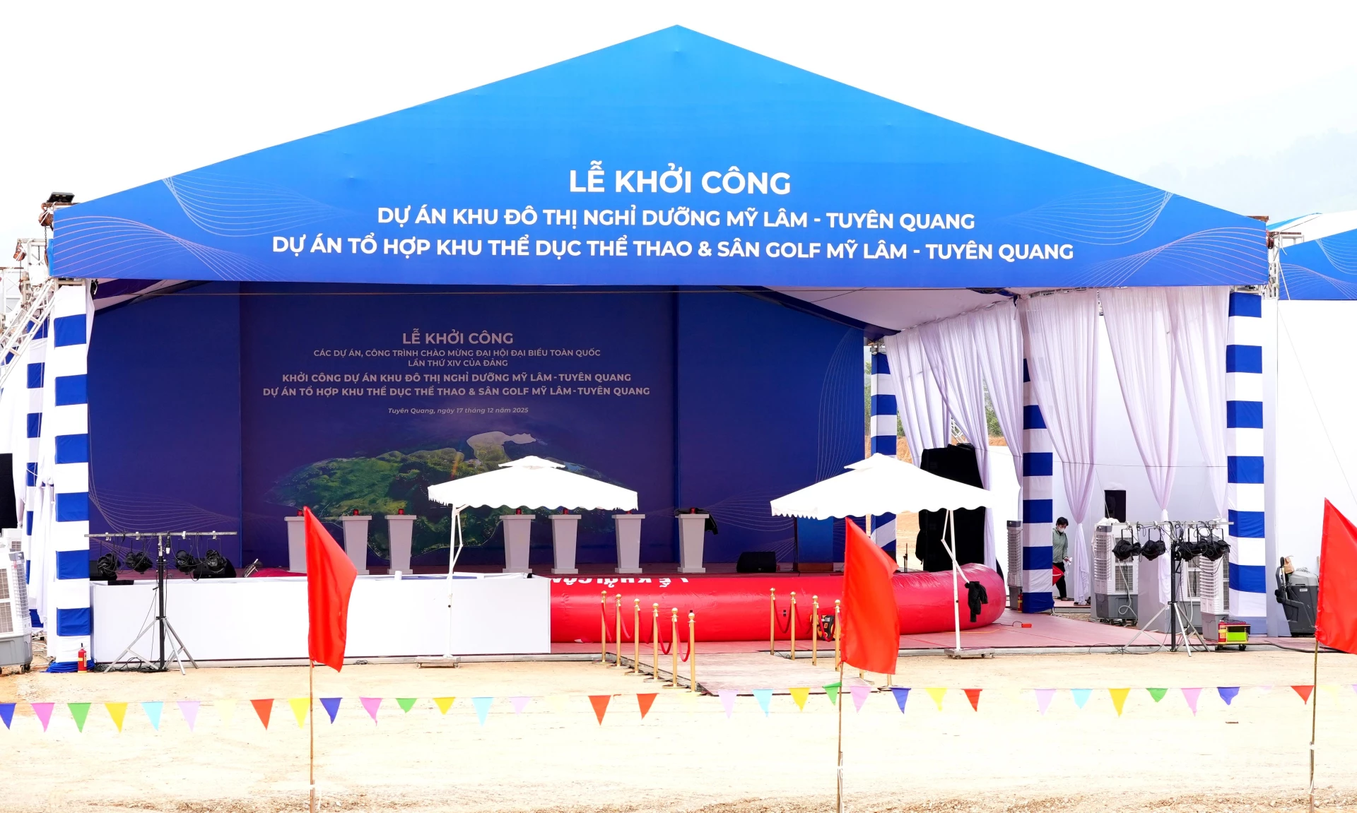 Địa điểm tổ chức buổi Lễ khởi công Khu đô thị nghỉ dưỡng Mỹ Lâm và Dự án Tổ hợp khu thể dục thể thao và Sân golf Mỹ Lâm đã sẵn sàng. Phối cảnh Khu đô thị nghỉ dưỡng Mỹ Lâm và Dự án Tổ hợp khu thể dục thể thao và Sân golf Mỹ Lâm. Địa điểm khởi công công trình Rạp tháng 8 và các dịch vụ văn hóa, phường Minh Xuân nhìn từ trên cao. Các công nhân đang hoàn thiện những bước cuối cùng cho buổi lễ.