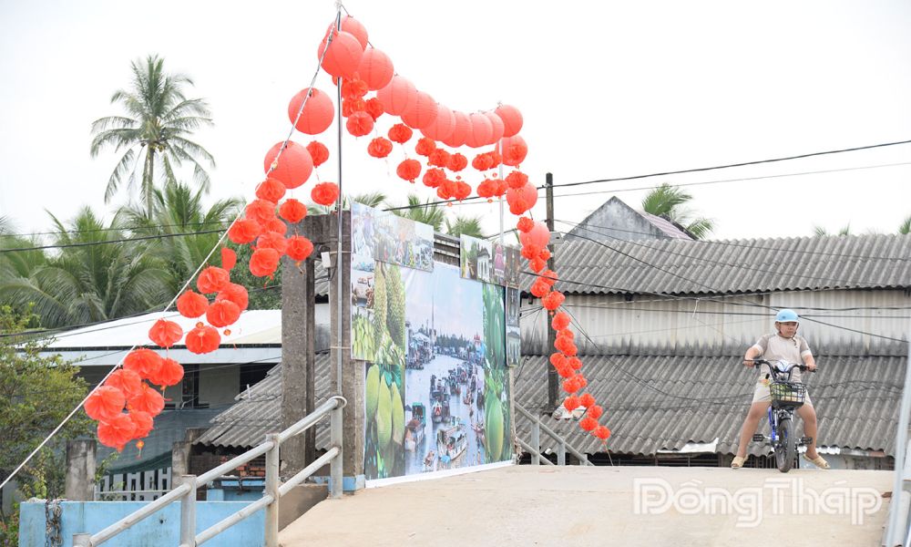 Đường và cổng chào Làng cổ Đông Hòa Hiệp được trang trí phục vụ Lễ hội.